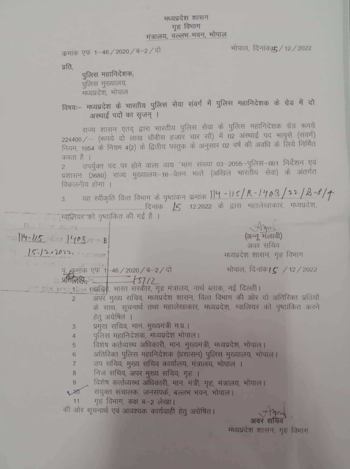 2 DG Grade Post Created In MP: पुलिस में डायरेक्टर जनरल ग्रेड के 2 पद निर्मित