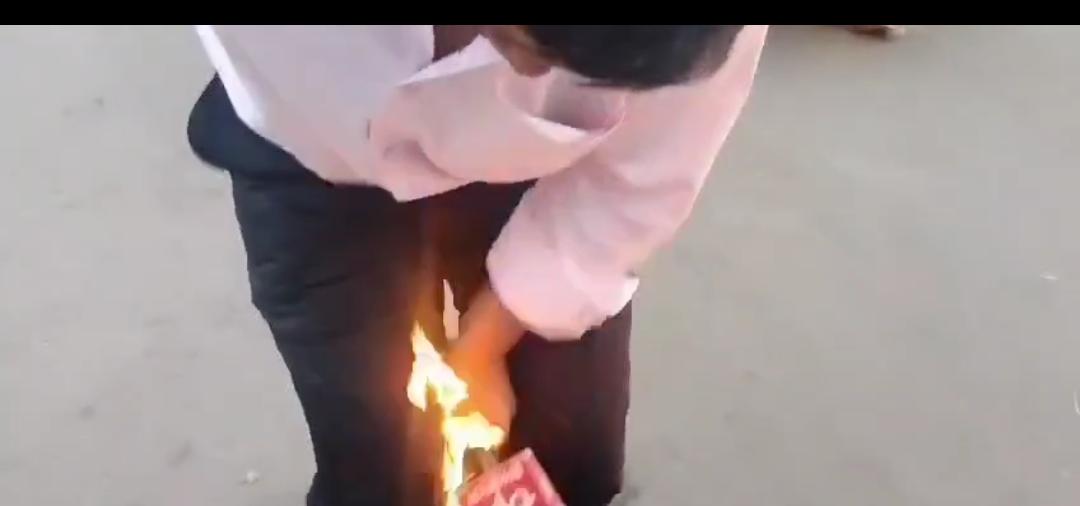 बता दें कि मंत्री विजय शाह के विवादित बयान पर विरोध प्रदर्शन और पुतला दहन किया जा रहा था जहां इसी के दौरान आग लगाने के लिए बॉटल में पेट्रोल लाया गया था जहां पुतले पर पेट्रोल डालते समय बोतल से निकलकर उड़ते हुए पेट्रोल भीड़ पर गिर गया और आग भी लग गई। इस दौरान वहां बच्चे भी थे, जिससे कि बड़ा हादसा होते-होते बच गया।