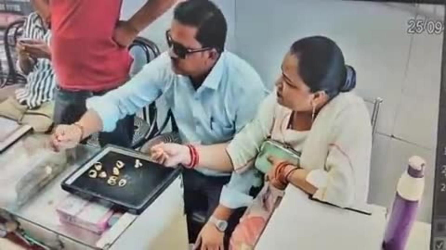 ज्वेलर्स के यहाँ ग्राहक बनकर आए पति-पत्नी ने की चोरी , घटना CCTV में कैद, वीडियो हुआ वायरल