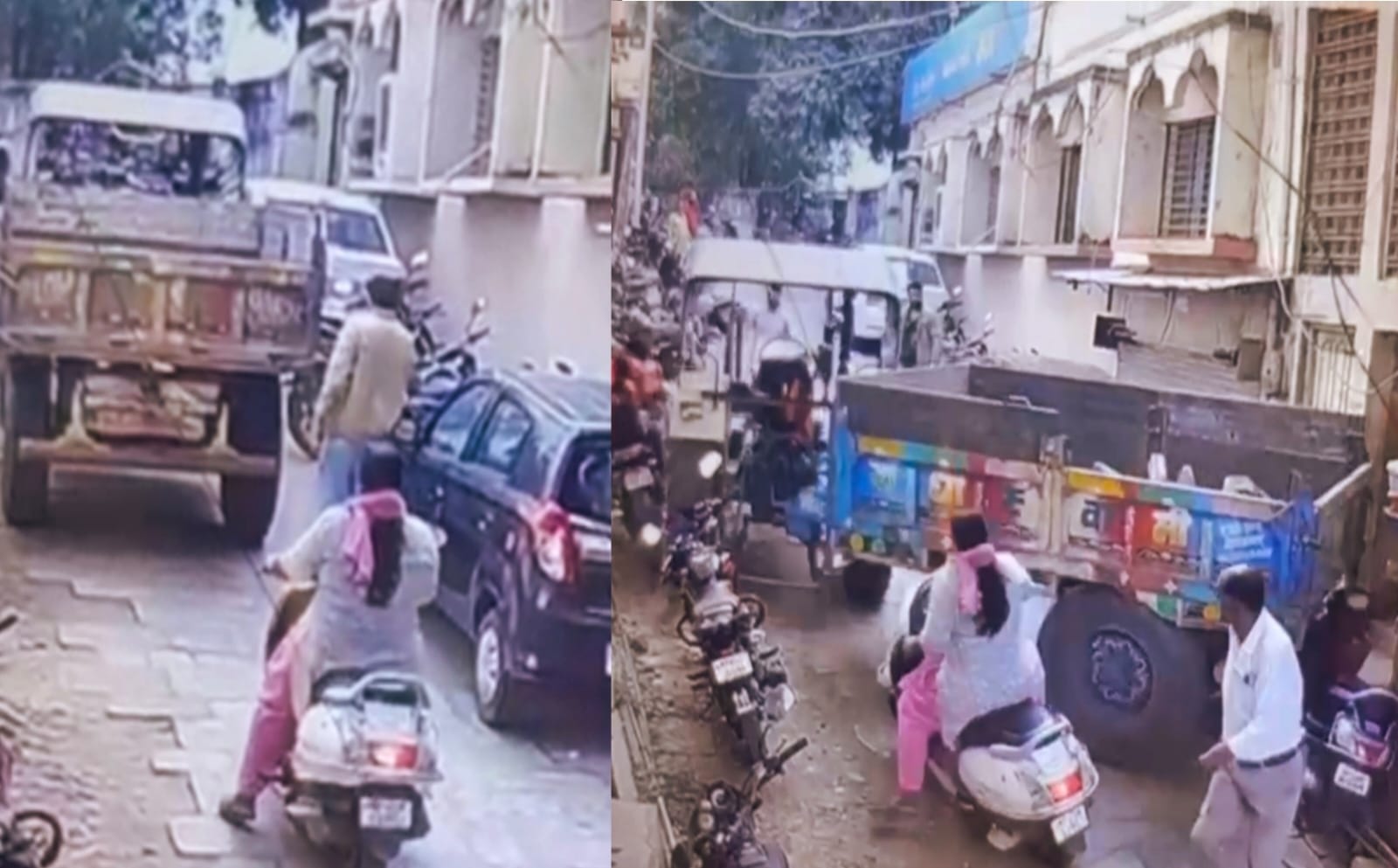 घटना के समय राजवाड़ा परिसर मार्ग पर एक ट्रैक्टर ट्रॉली सहित स्टार्ट हालत में खड़ा था। संकरे रास्ते पर दोपहिया वाहन चालक रुक-रुककर निकलने का प्रयास कर रहे थे, जिससे यातायात पहले से ही अव्यवस्थित था। इसी दौरान एक महिला स्कूटी से वहां पहुंची और आगे निकलने के लिए इंतजार करने लगी।