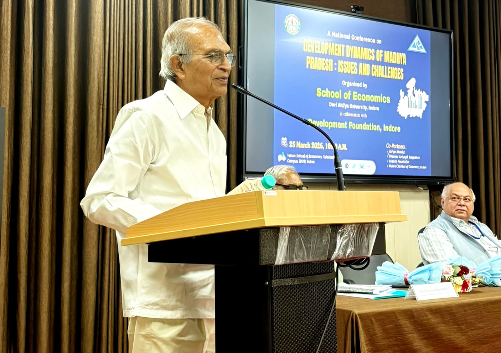 देवी अहिल्या विश्वविद्यालय के अर्थशास्त्र विभाग एवं डेवलपमेंट फाउंडेशन के संयुक्त तत्वावधान में आयोजित “मध्य प्रदेश का विकास और चुनौतियां” विषयक सेमिनार को संबोधित करते हुए श्री नाहटा ने नीति आयोग की राज्यों की रैंकिंग का उल्लेख किया।