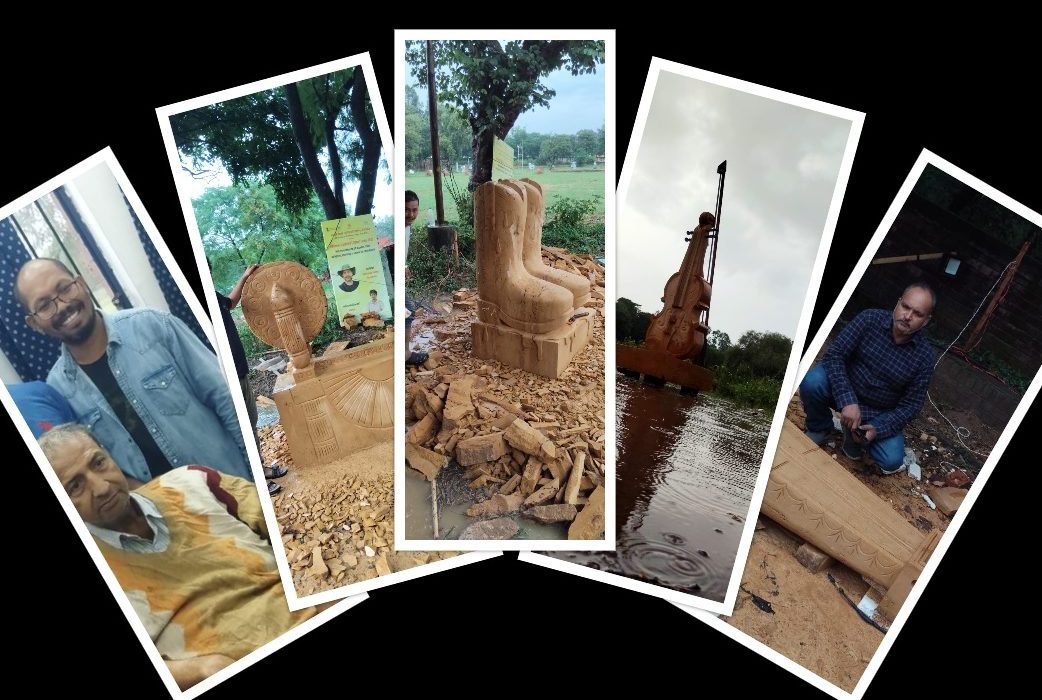 वाद्य यंत्रों में छत्तीसगढ़ से मूर्तिकार डॉ उमेश कुमार नेताम ने प्रमोद के सहयोग से ‘तोड़ी’ वाद्य, गोवर्धन मंडल ने सोनू के सहयोग से ‘गिटार’, मध्य प्रदेश के रंजीत कुमार ने मनोज के सहयोग से वाद्य यंत्र ‘चिकारा’ बनाया। रांची के धर्मजय कुमार ने अपने सहयोगी के साथ ‘चरखा’ बनाया, गुजरात के शत्रुघन कुमार सिंह ने अपने सहयोगी राजेंद्र के साथ मिलकर पत्थर का ‘चमरौधा’ अर्थात जूती जोड़ा और मणिपुर के मूर्तिकार जैनिसन ने सहयोगी रती राम के साथ वृहद् आकार वाला वर्षा में भीगता ‘गमबूट’ तैयार किया।