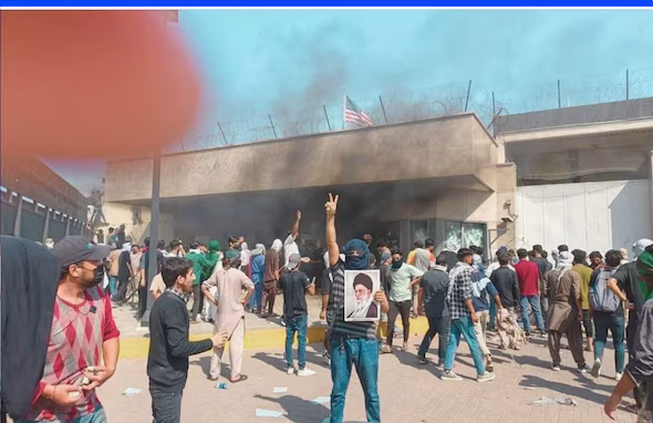 कराची ; कराची में अली खामेनेई की मौत की खबर के बाद उग्र प्रदर्शन भड़क उठे. गुस्साए प्रदर्शनकारियों ने अमेरिकी दूतावास के बाहर तोड़फोड़ की और आगजनी की घटना सामने आई. पुलिस और सुरक्षा बलों ने हालात काबू में करने के लिए इलाके को घेर लिया.