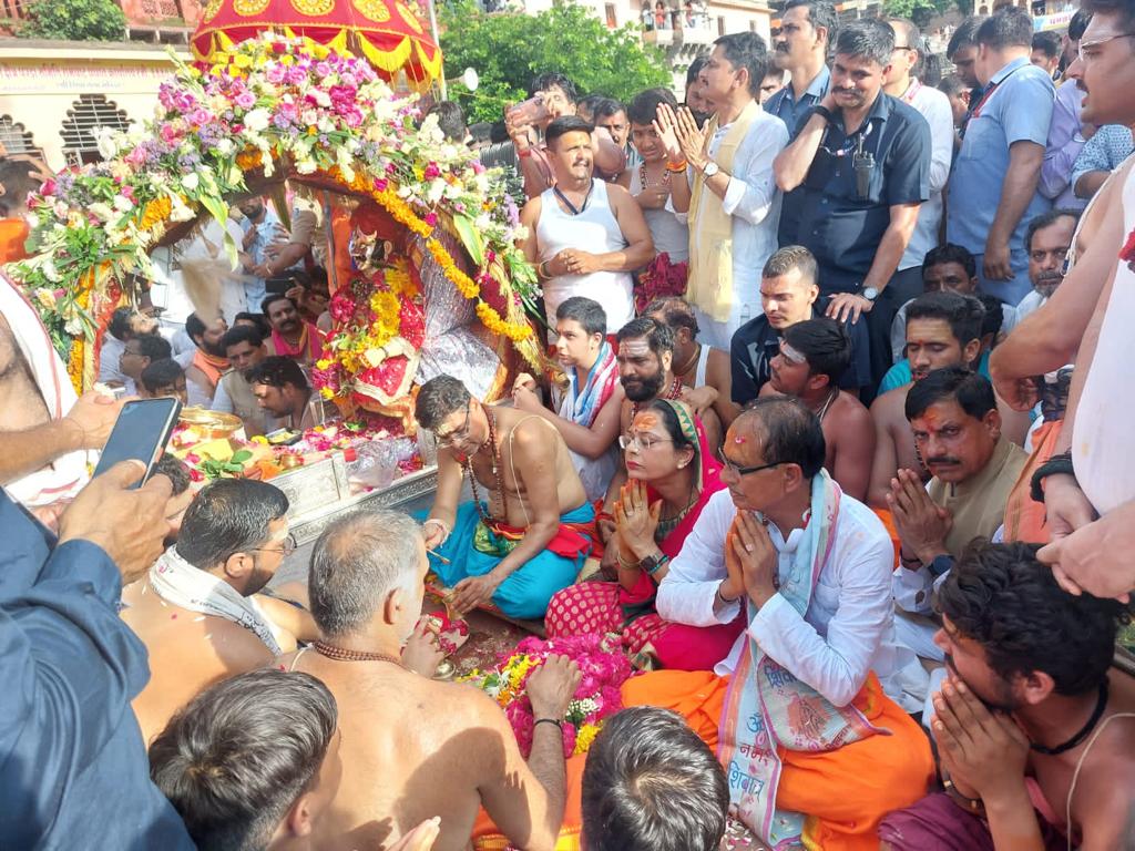 श्री महाकालेश्वर मंदिर के सभामंडप में मध्यप्रदेश के मुख्यमंत्री श्री शिवराज सिंह चौहान ने सपरिवार श्री चन्द्रमोलेश्वर भगवान का पूजन-अर्चन किया|