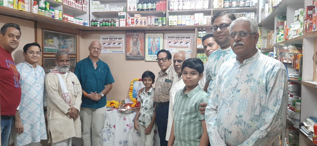 इसके पूर्व भगवान धनवंतरी का पूजन अर्चना कर सामूहिक आरती की गई। मालवी कवि विनोद श्याम कुमार चौबे ने आयुर्वेद जनक भगवान धनवंतरी पर गीत वंदना प्रस्तुत की।