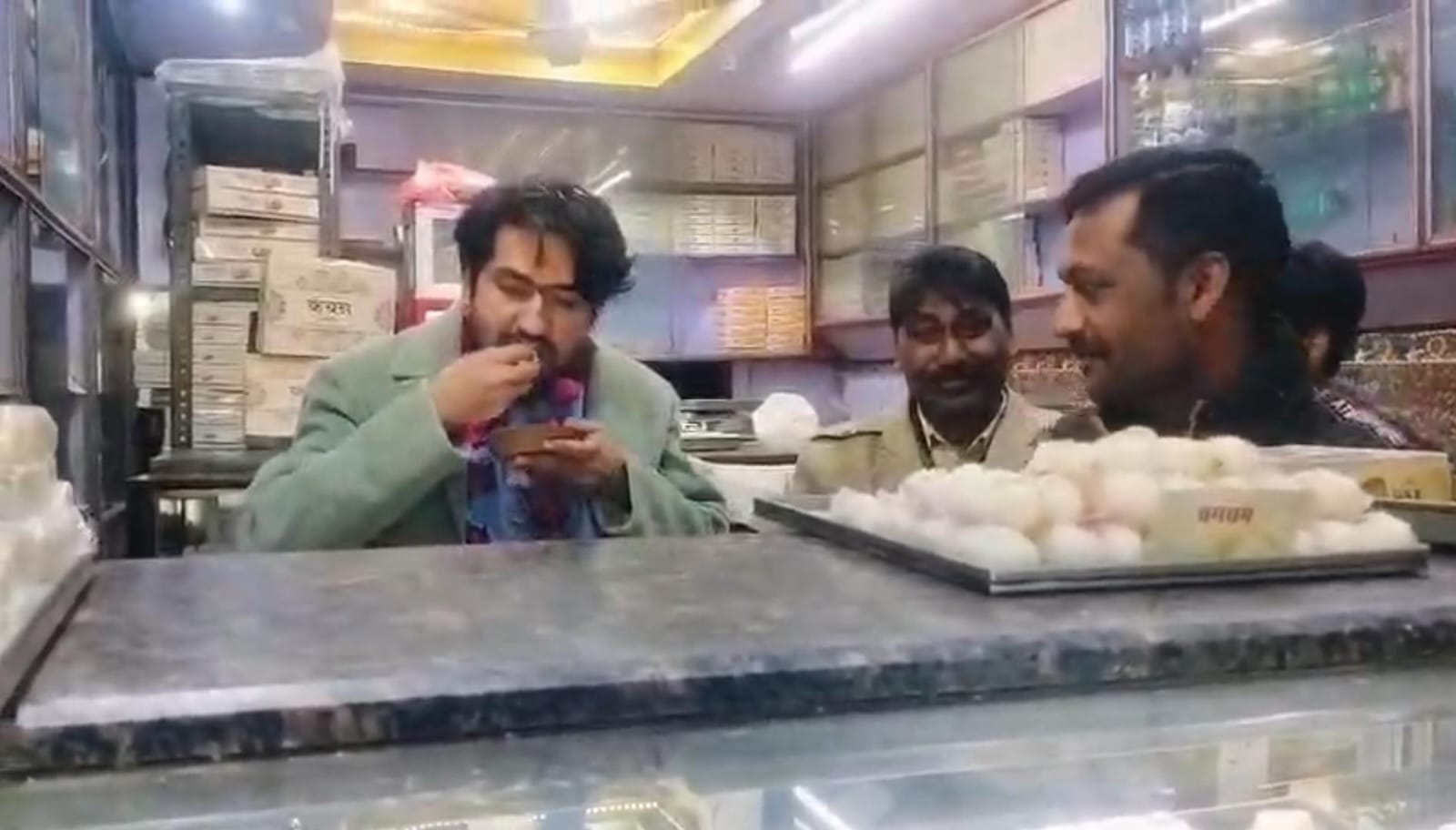 छत्रसाल चौराहे पर कंचन स्वीट्स में रसगुल्ले-रसमलाई खाई, दुकानदार और परिवार भावुक..