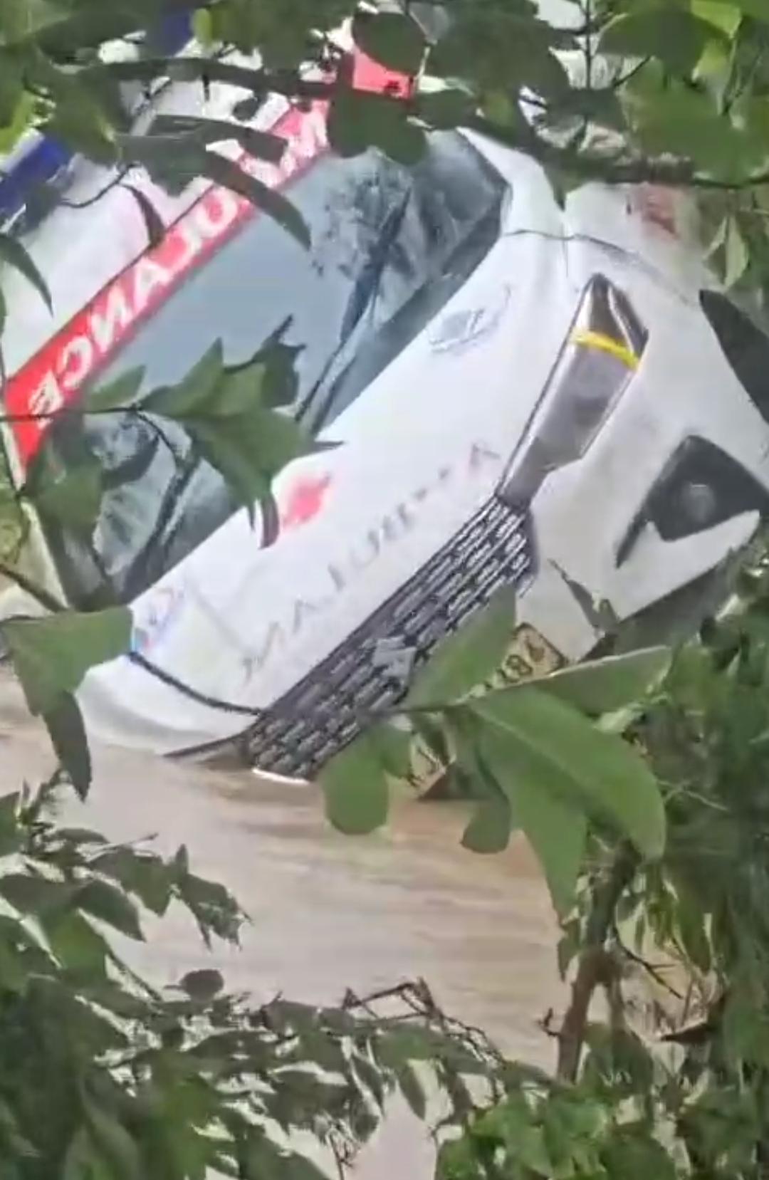 छतरपुर में लगातार बारिश से भोपाल की एंबुलेंस पानी में बही