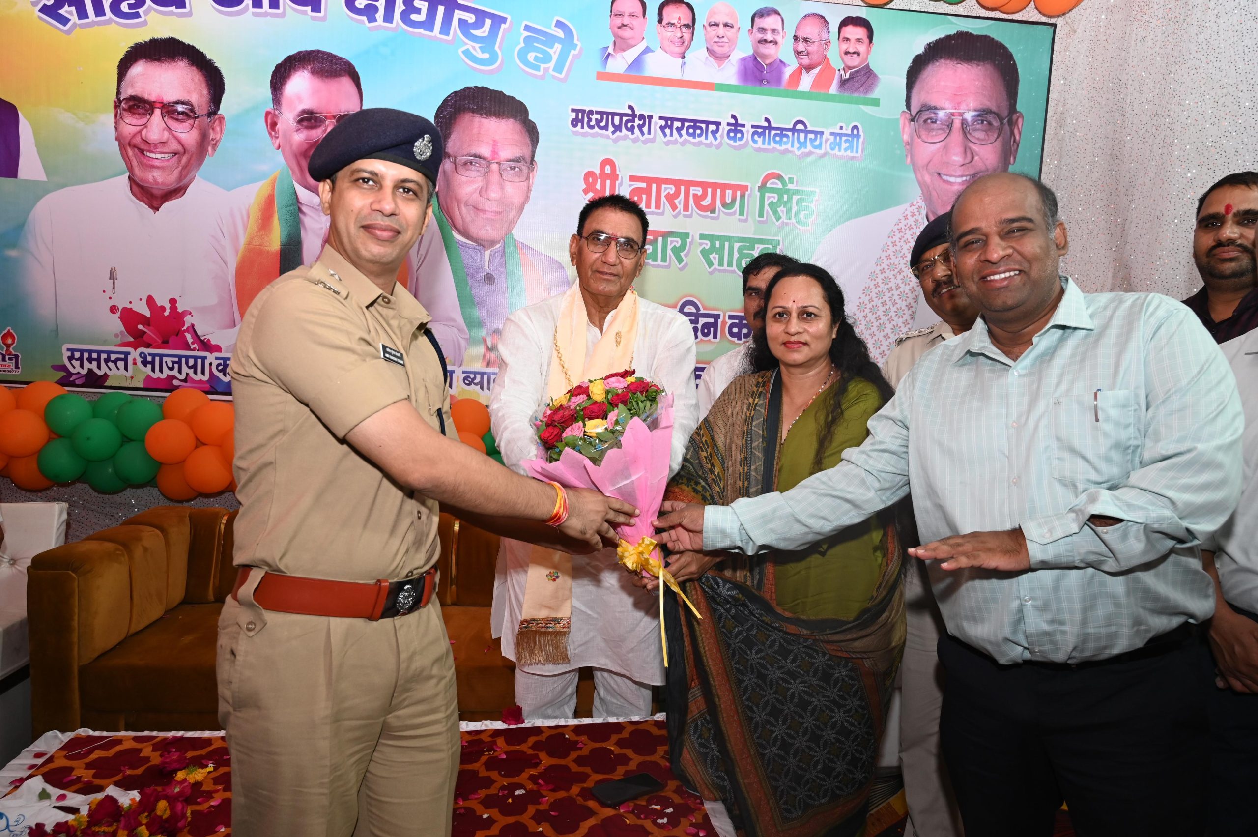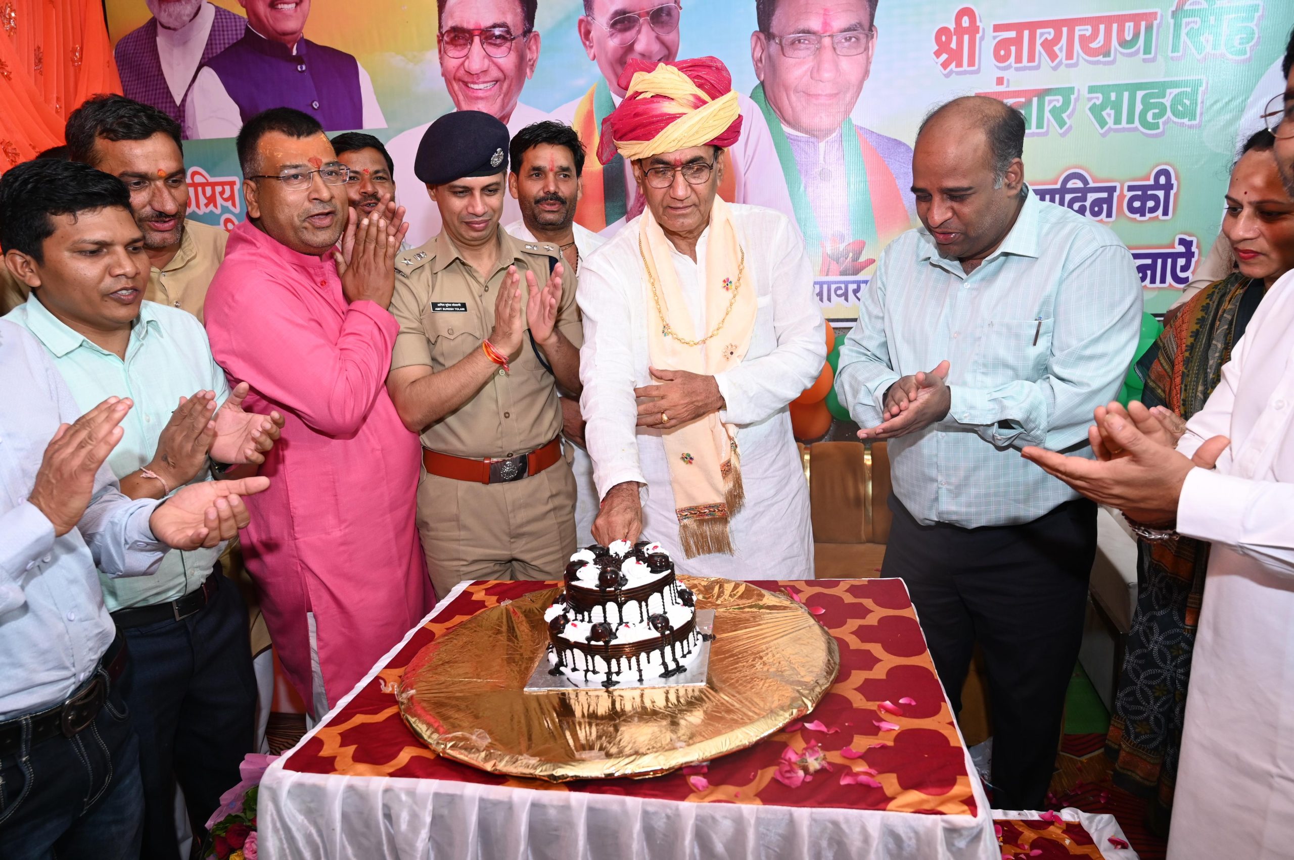 मध्य प्रदेश सरकार के राज्य मंत्री नारायण सिंह पंवार ने अपने जन्मदिन समारोह में सार्वजनिक रूप से केक काटा और सबसे पहले कलेक्टर को खिलाया, फिर एसपी को भी अपने हाथों से केक दिया।