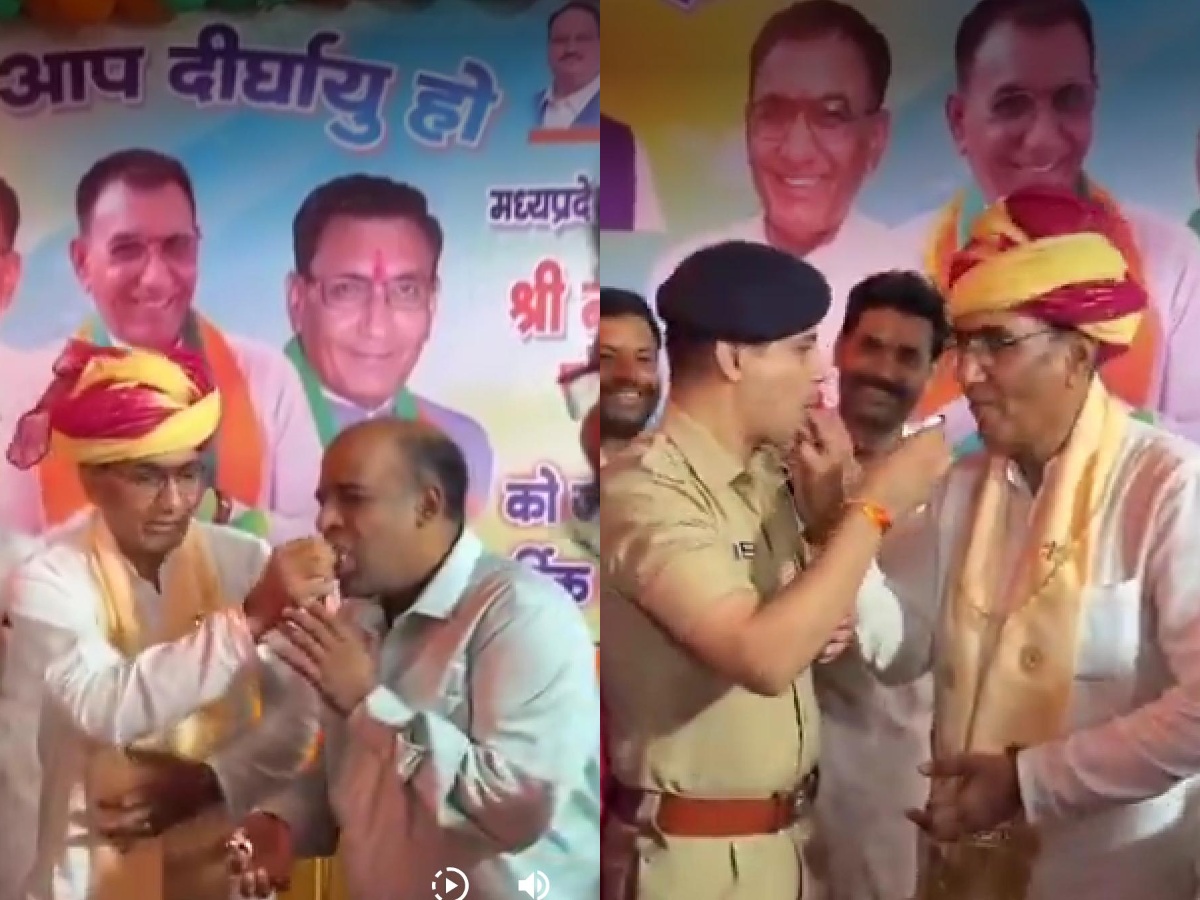 भोपाल: Birthday Celebration of A Minister: मध्यप्रदेश की डॉ मोहन सरकार के एक मंत्री का जन्मदिन समारोह इन दिनों में चर्चा में है। इस समारोह में मंत्री और कलेक्टर- SP ने एक दूसरे को केक खिलाया। यह पूरा दृश्य कैमरे में कैद हो गया।सोशल मीडिया पर वायरल इस दृश्य पर लोग प्रशासन की निष्पक्षता पर सवाल उठा रहे हैं।