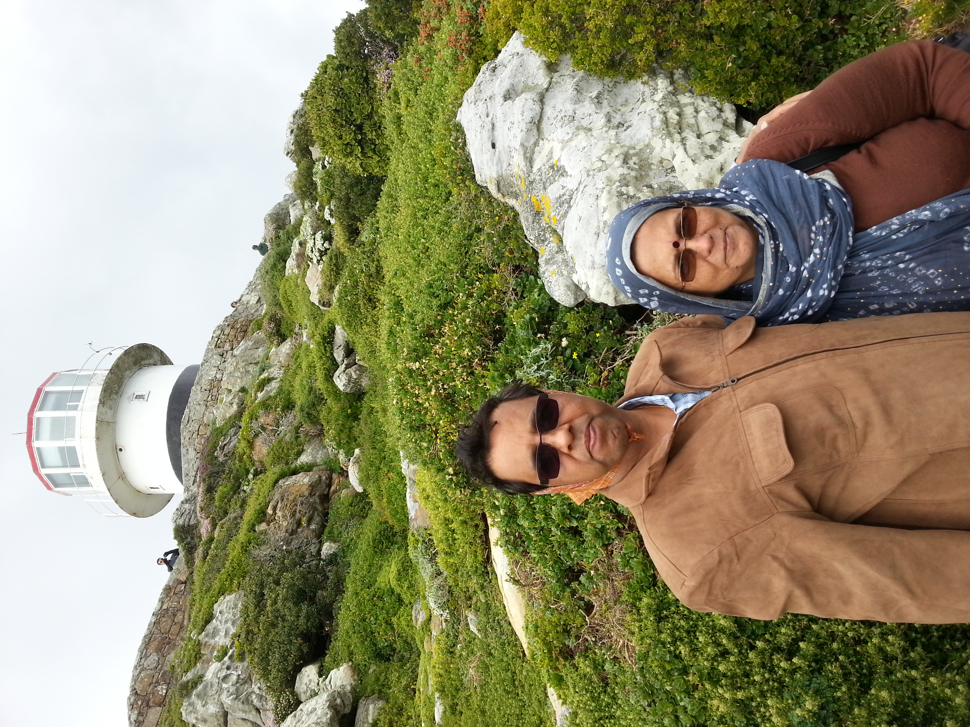 केप ऑफ गुड होप के पत्थरों पर ऊँचाई तक चढ़ कर पानी के पश्चाताप को देखना एक अलग अनुभूति थी| हो सकता है हिन्द महासागर और अंध महासागर मिलन की खुशियाँ मनाते हुए यहाँ झूम रहे हों, फिर मुझे लगा कि नहीं-नहीं, समंदर अपने जल से धरती माँ के पाँव पखार रहा है, यही विचार मुझे सत्य के ज्यादा निकट लगा| यहाँ से हम नेशनल पार्क गए नेशनल पार्क के शिखर तक जाने के लिए पैदल भी चढ़ सकते हैं और एक छोटी सी ट्रेन भी जाती है, हम उस खिलौना ट्रेन से जाते हैं| यही है वह केप पाइंट जहाँ का अनोखा व्यू यहाँ से दिखाई देता है एक तरफ हिंदुस्तान के नाम पर हिन्द महासागर और केप पॉइंट के दूसरी तरफ अटलान्टिक महासागर| हम यहाँ ऊपर एक और जगह तक जाते हैं, यहाँ समुद्र मार्ग के लिए प्रकाश स्तम्भ (लाइट हाउस) बना हुआ है और एक पिलर पर तमाम देशों से इस स्थान की दूरी और दिशा बताती फ्लैग पट्टी लगी है| नयी दिल्ली ९,२९६ किलोमीटर लिखा हुआ है|