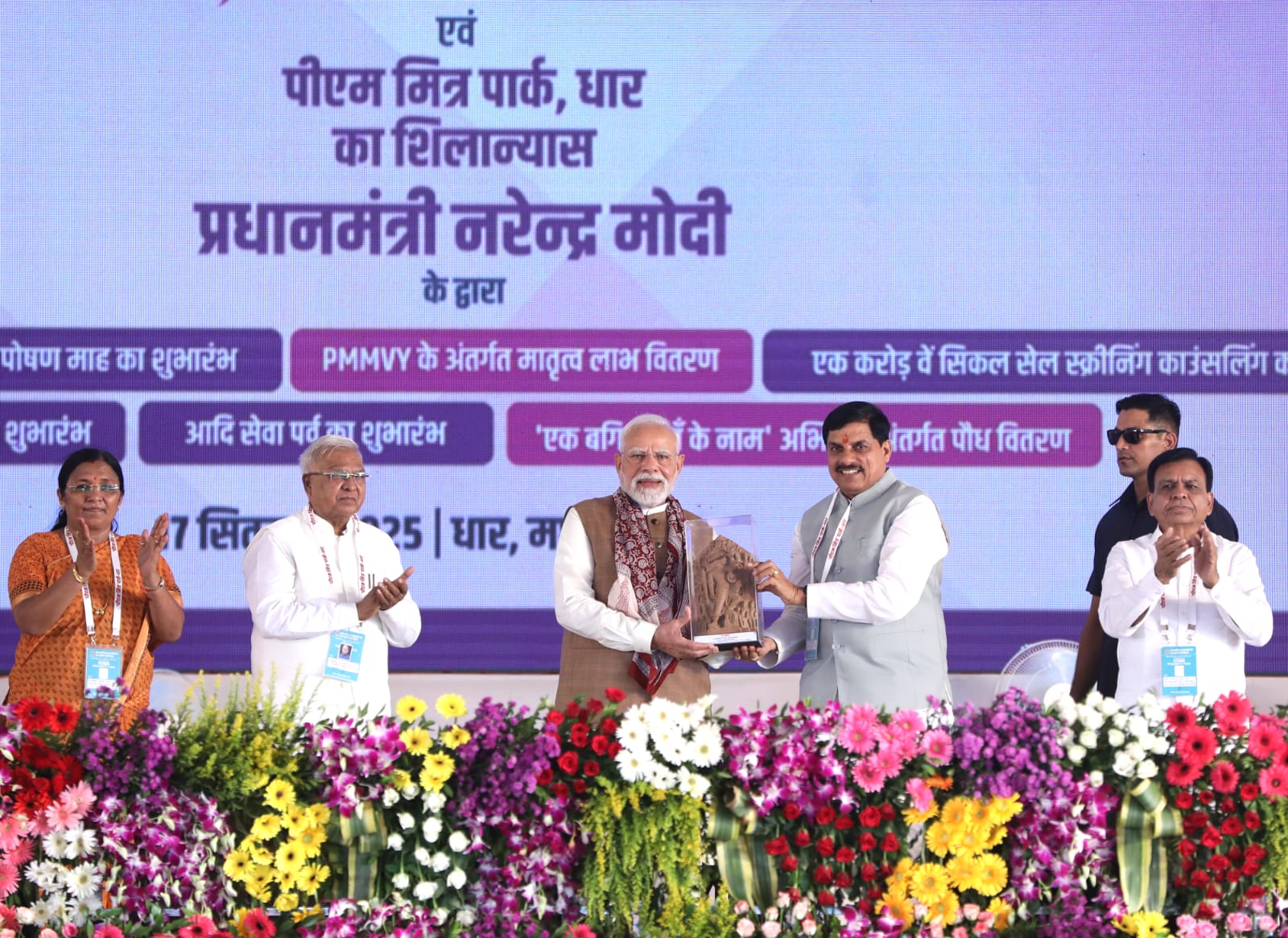 प्रधानमंत्री श्री मोदी को मुख्यमंत्री डॉ यादव ने भेंट की जन्मदिन पर मंदसौर की दसवीं शताब्दी की दुर्लभ वराह प्रतिमा