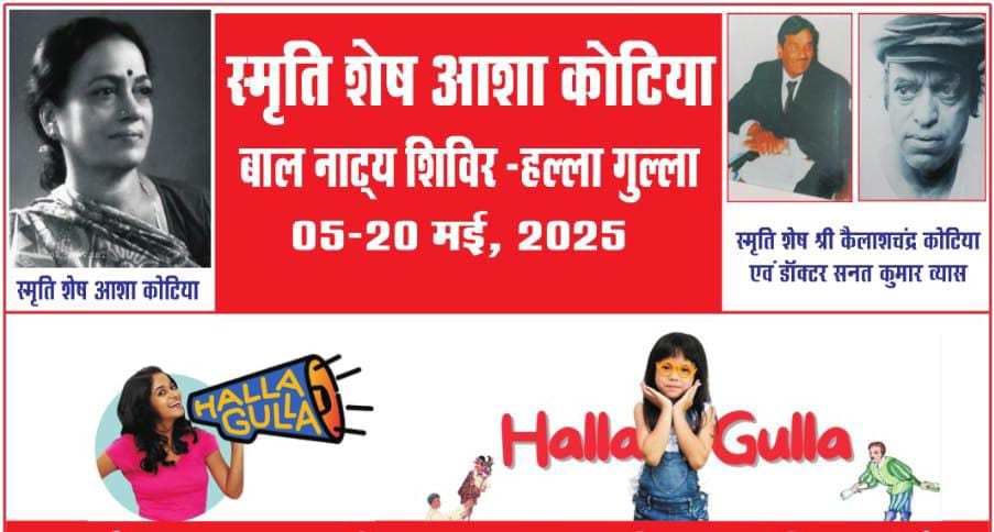 शिविर शिक्षिका एवं संस्कृतिकर्मी स्व आशा कोटिया के बाल नाट्य एवं कला के क्षेत्र में उनके महत्वपूर्ण योगदान को समर्पित है। साल 1990 से 2005 तक आशा कोटिया एवं प्रोफ़ेसर डॉ सनत कुमार द्वारा स्थानीय साथियों के सहयोग से मई माह में स्व कैलाशचन्द्र कोटिया की स्मृति में इंदौर में ‘हल्ला -गुल्ला’ बाल रंग शिविर का आयोजन निरंतर होता था। 5 जुलाई 2006 को आशा कोटिया के निधन के बाद डॉ सनत कुमार एवं अन्य रंगकर्मी साथियों के सहयोग से इंदौर में यह आयोजन 2009 तक निरंतर चलता रहा। परंतु 1 दिसम्बर 2012 में डॉ सनत कुमार के निधन के बाद यह सिलसिला थम गया था। बीते साल से यह फिर से शुरू हो सका।