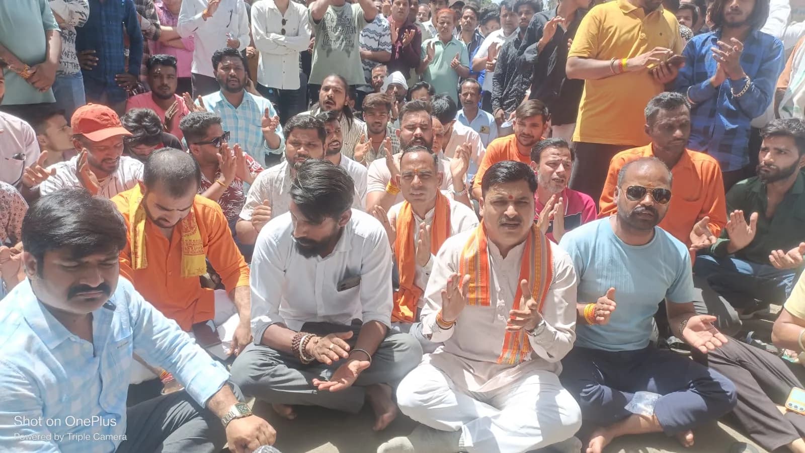 प्रदर्शनकारियों ने बाणगंगा के पास लगे बैरीकेड्स तोड़कर पॉलिटेक्टिक चौराहे पर जमाकर प्रदर्शन किया।