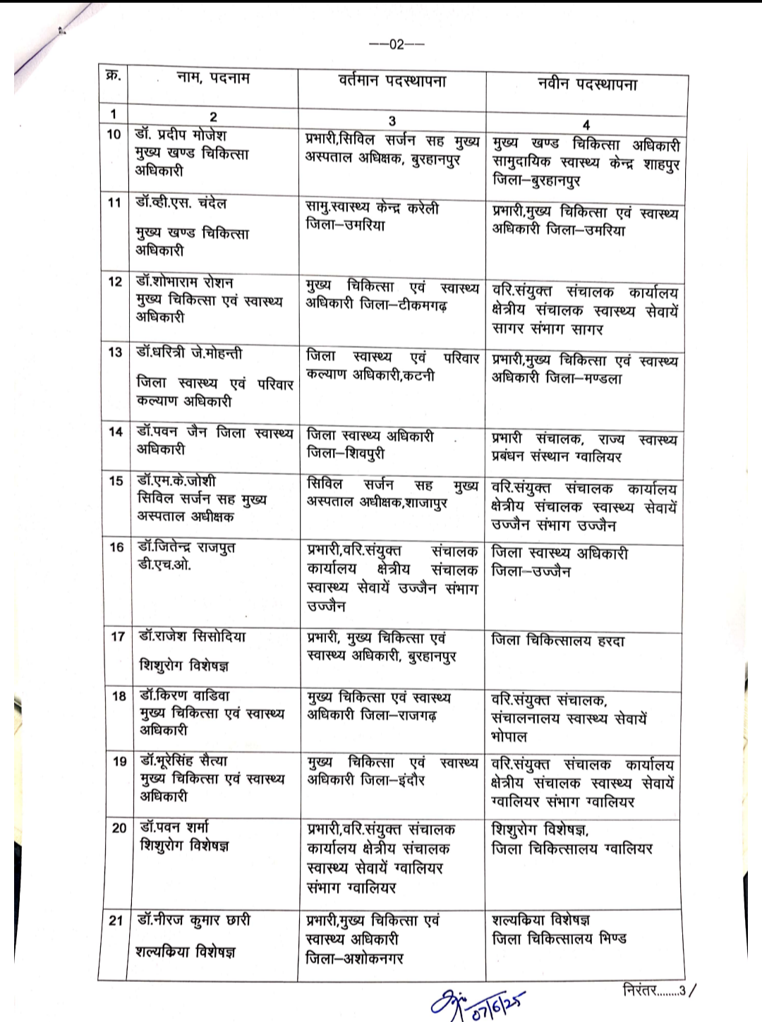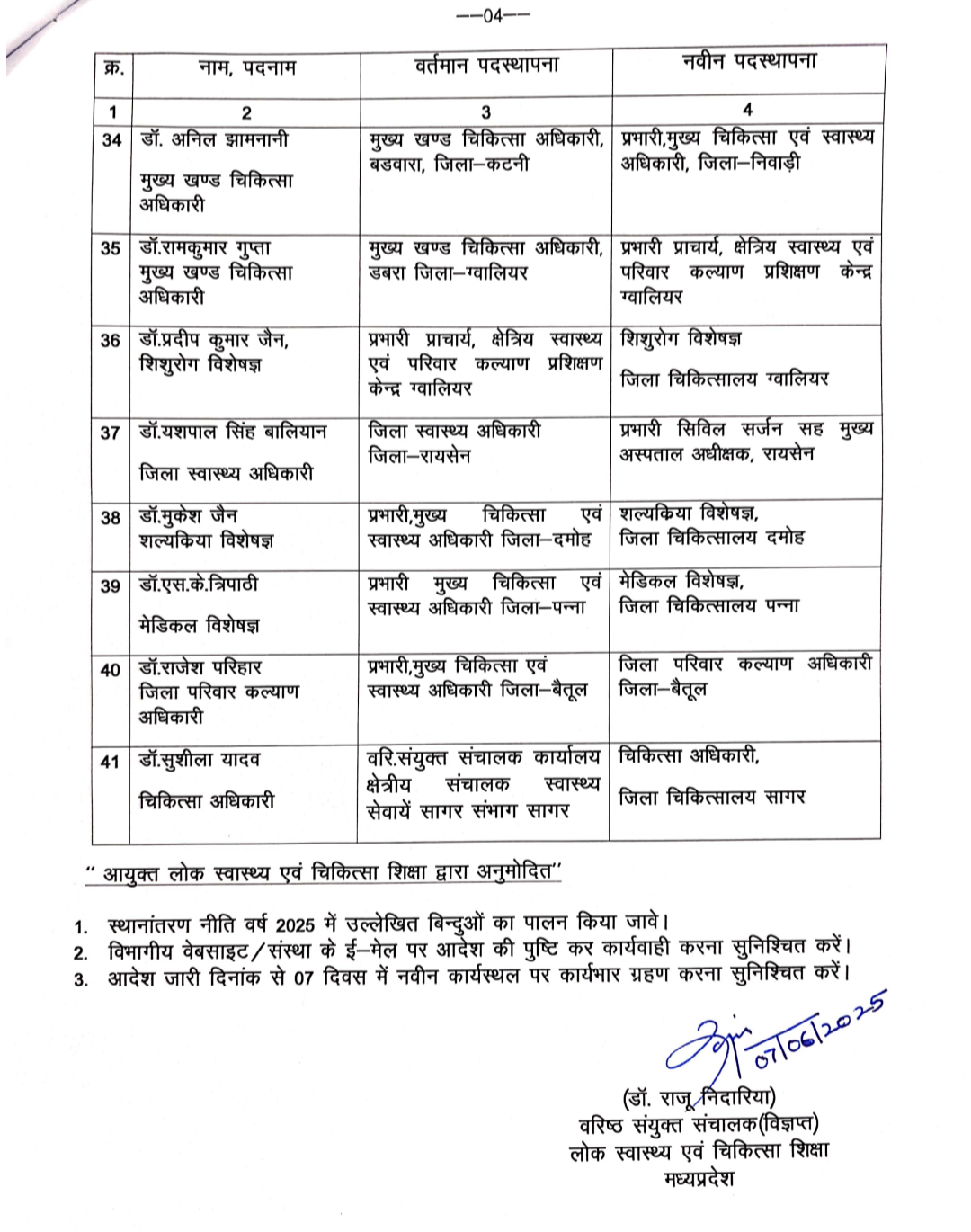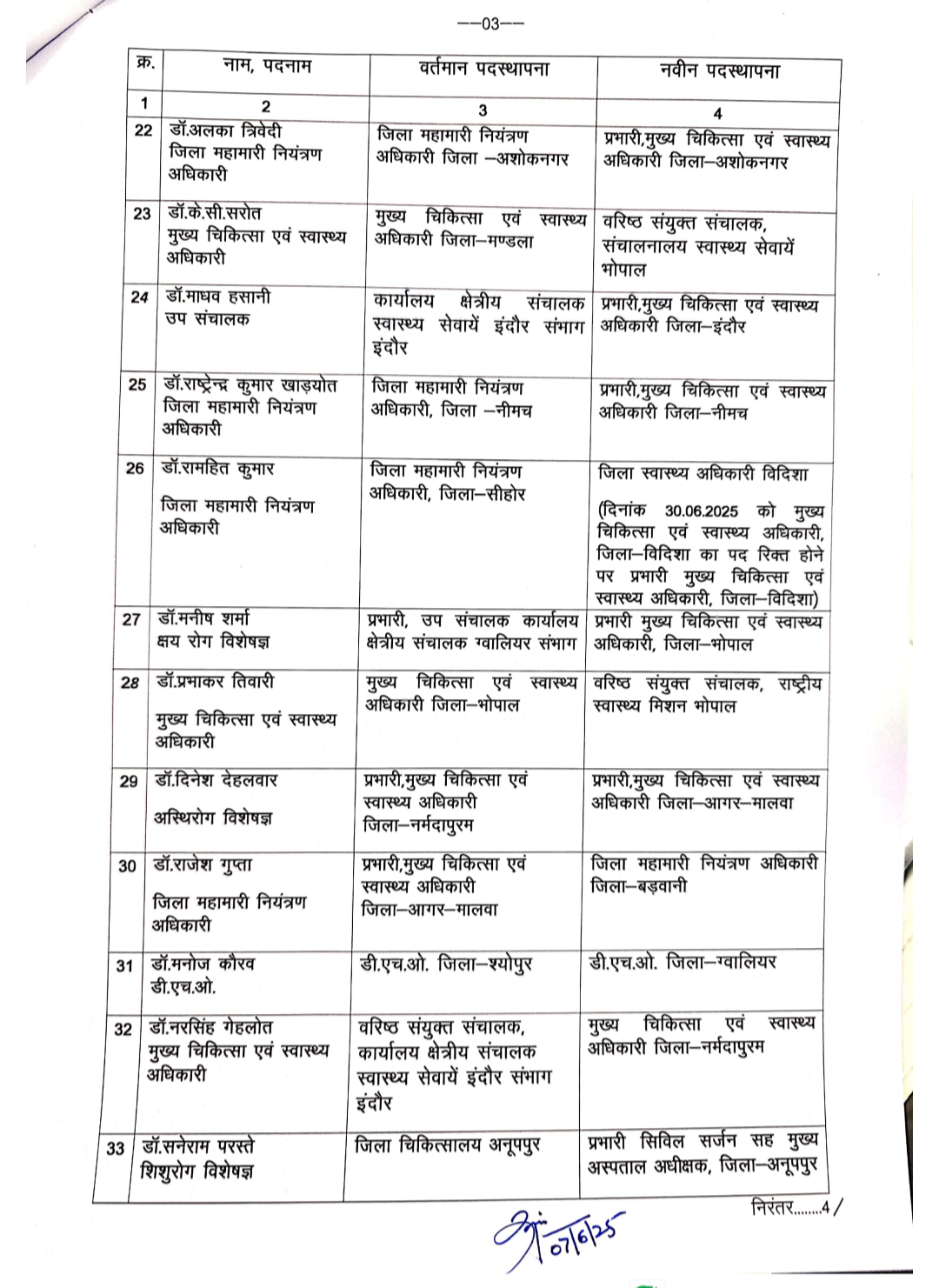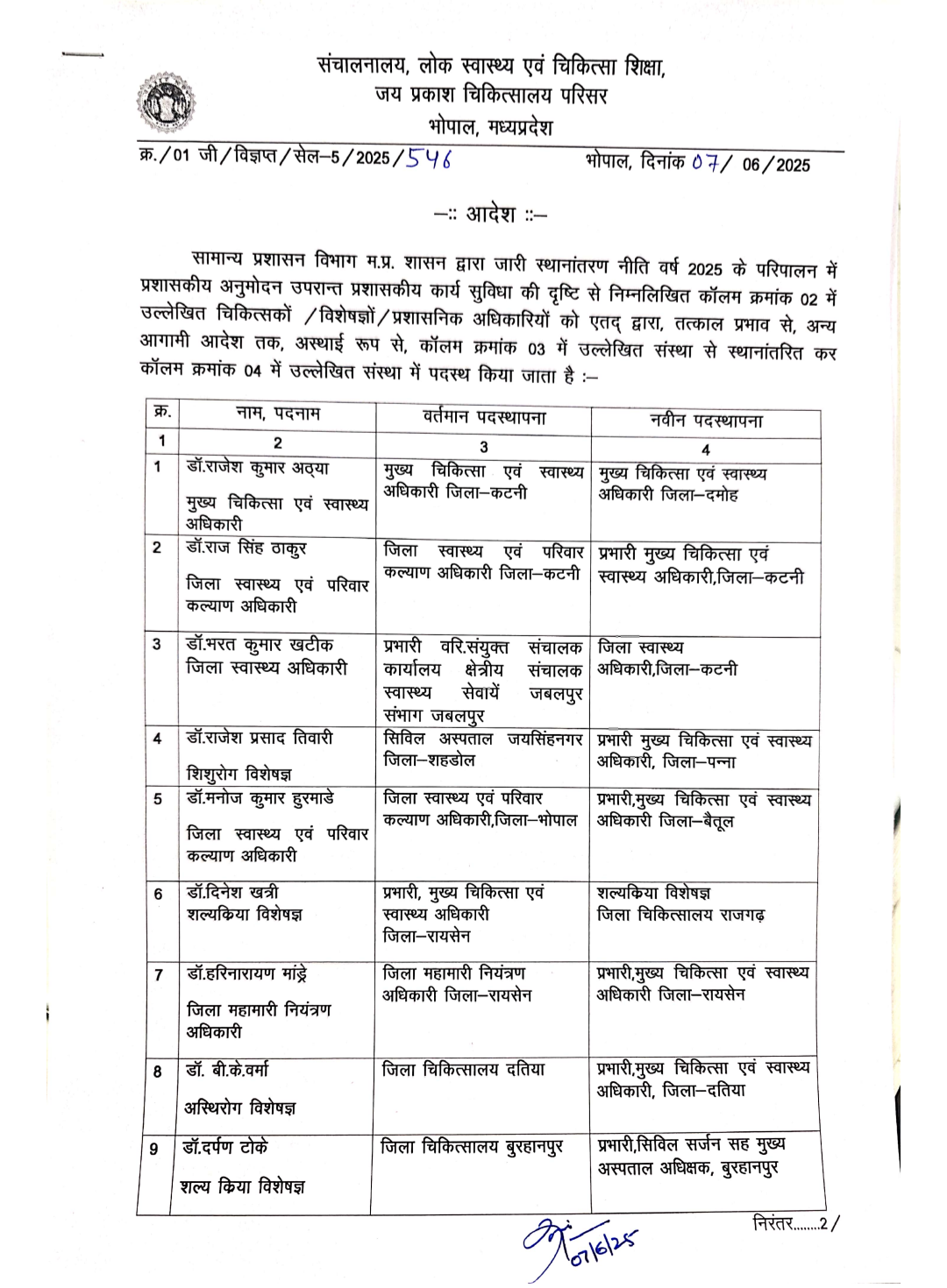 CMO’s Transfer List: MP में 41 मुख्य चिकित्सा अधिकारियों और सिविल सर्जनों के तबादले, इंदौर और भोपाल में नए CMO पदस्थ