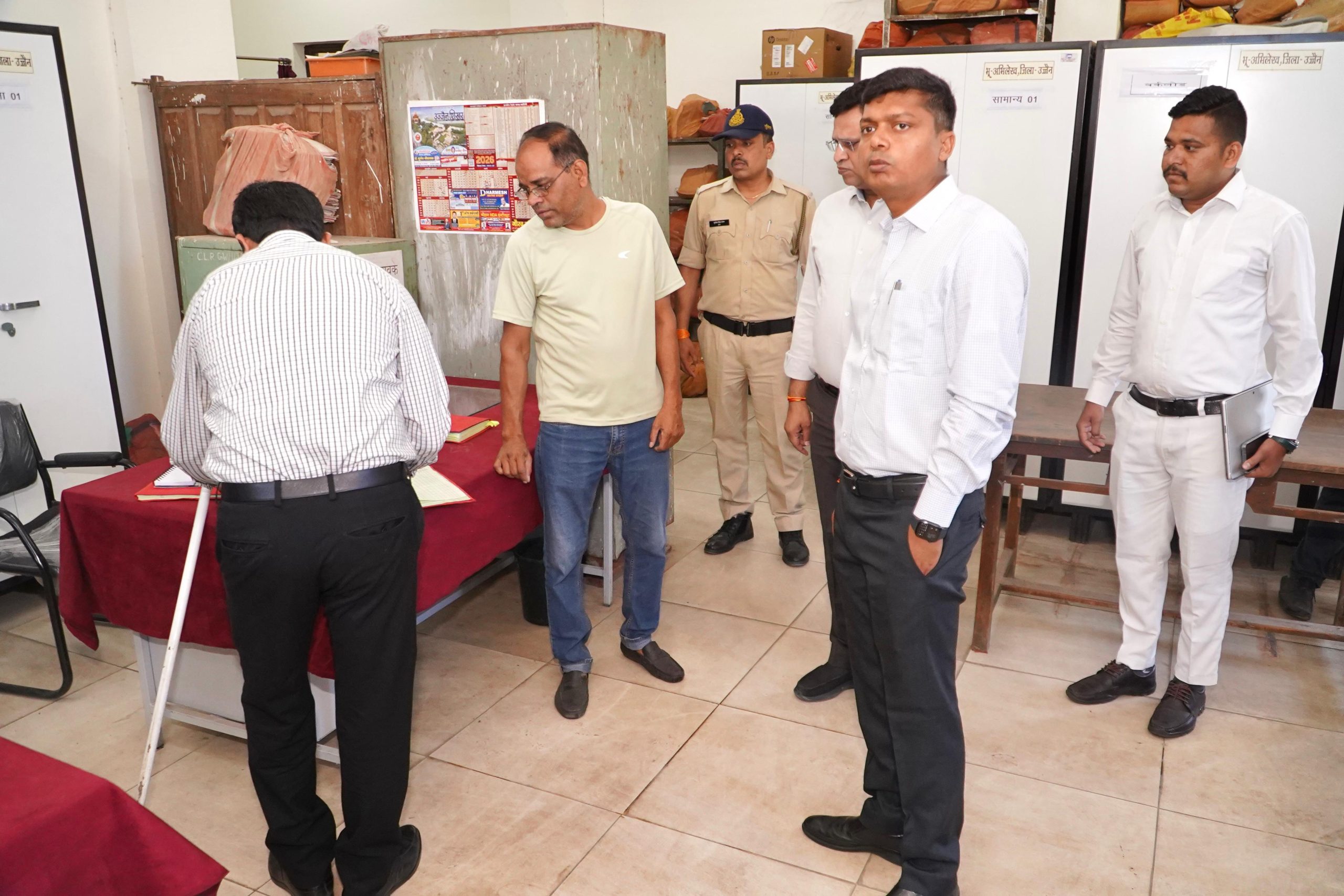 उज्जैन। कलेक्टर श्री रौशन कुमार सिंह ने बुधवार को प्रशासनिक संकुल भवन की द्वितीय तल स्थित कलेक्टर कार्यालय का आकस्मिक निरीक्षण किया। कलेक्टर श्री सिंह ने परिसर में नियमित रूप से साफ-सफाई करने के निर्देश दिए। कलेक्टर श्री सिंह ने एडीएम कार्यालय, अधीक्षक भू-अभिलेख कार्यालय, लोकसेवा प्रबंधन, नाजिर शाखा का निरीक्षण किया और कार्यालय में उपस्थित कर्मचारियों की अपने समक्ष उपस्थिति दर्ज करवाई। जो कर्मचारी कार्यालय में विलंब से आते है, उनका आधा दिवस का वेतन काटने के आदेश जारी किए गए।