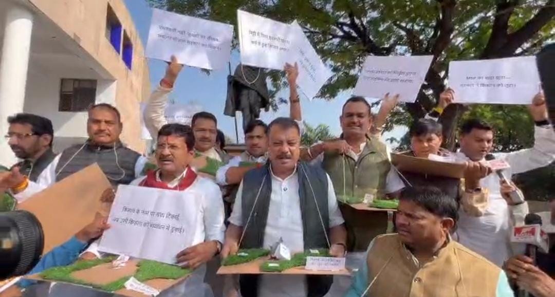 विधानसभा परिसर में किसानों के अधिकारों की रक्षा के लिए कांग्रेस विधायक दल का जोरदार प्रदर्शन