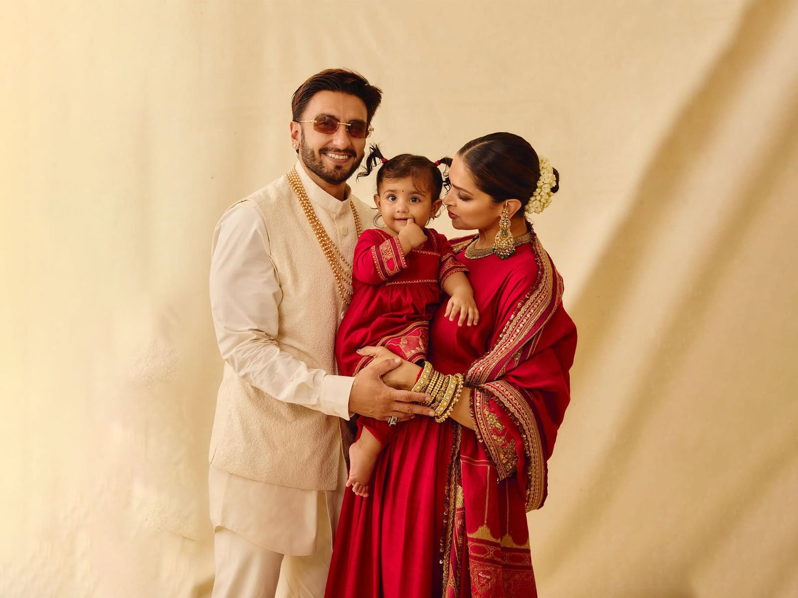 पहली तस्वीर में दीपिका अपनी बेटी दुआ को गोद में लिए दिखाई दीं, जबकि रणवीर दोनों के साथ मुस्कुराते हुए खड़े थे।