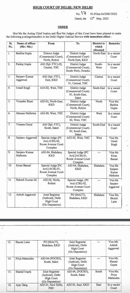 देखिए, Delhi HighCourt द्वारा जारी तबादला सूची.