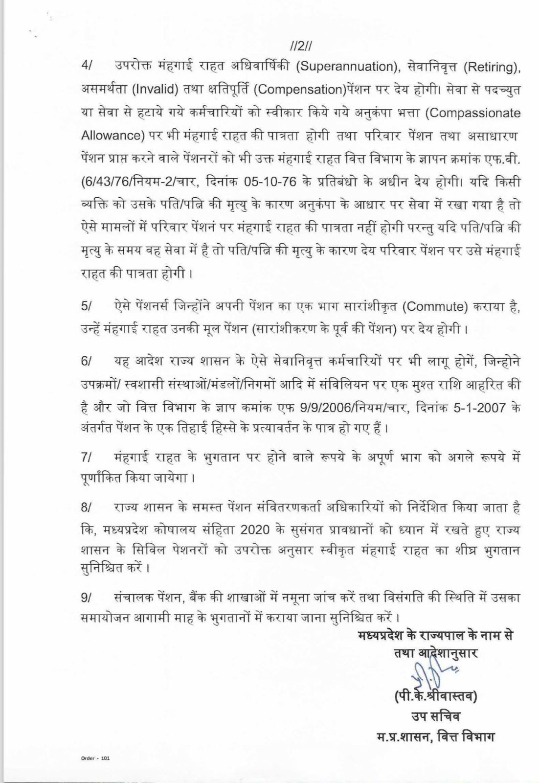 आदेश में बताया गया है कि 1 अक्टूबर 2024 से सातवें वेतनमान में 50% एवं छठवें वेतनमान में 239 प्रतिशत महंगाई राहत स्वीकृत की गई है।