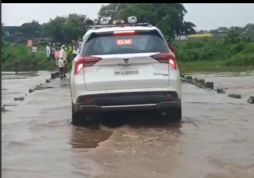 भारी बारिश के चलते नदी नाले उफान पर, पुलिया पर फंसने से बमुश्किल बची बुरहानपुर कलेक्टर की गाड़ी