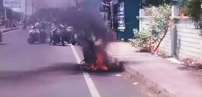 छिंदवाड़ा में नागपुर रोड पर ई-बाइक में लगी आग , लपटें देखकर भागे लोग