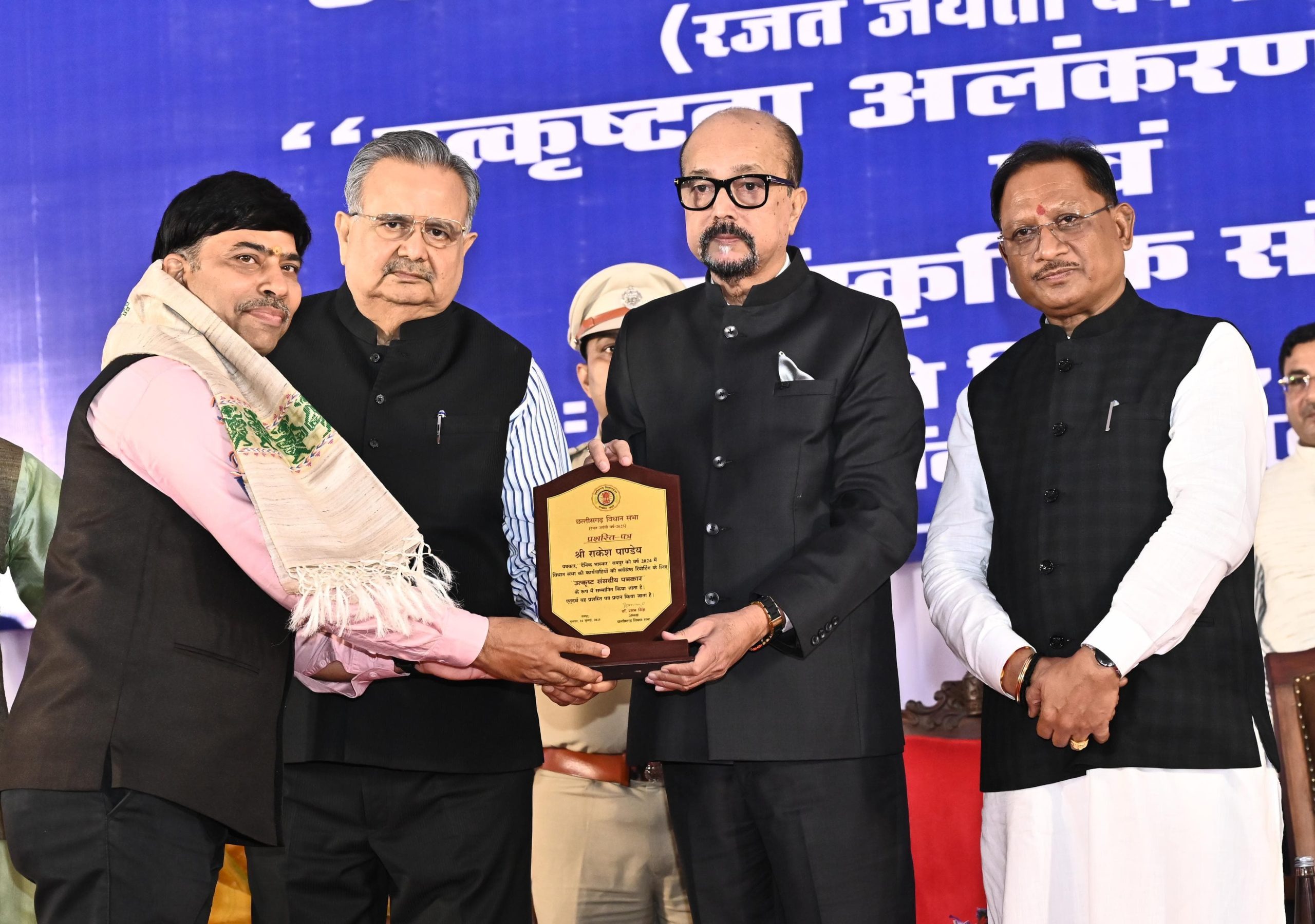 रायपुर. राज्यपाल श्री रमेन डेका के मुख्य आतिथ्य में आज छत्तीसगढ़ विधानसभा परिसर में आयोजित “उत्कृष्टता अलंकरण समारोह” गरिमामय वातावरण में संपन्न हुआ। विधानसभा अध्यक्ष डॉ. रमन सिंह ने समारोह की अध्यक्षता की। मुख्यमंत्री श्री विष्णु देव साय और नेता प्रतिपक्ष डॉ. चरणदास महंत विशिष्ट अतिथि के रूप में समारोह में शामिल हुए। “उत्कृष्टता अलंकरण समारोह” में वर्ष-2024 के लिए श्रीमती भावना वोहरा और श्री लखेश्वर बघेल को उत्कृष्ट विधायक के रूप में सम्मानित किया गया। उत्कृष्ट संसदीय रिपोर्टिंग के लिए दैनिक भास्कर के विशेष संवाददाता डॉ. राकेश कुमार पाण्डेय, सुदर्शन न्यूज़ चैनल के राज्य ब्यूरो प्रमुख श्री योगेश मिश्रा और सुदर्शन न्यूज़ के कैमरामेन श्री विश्वप्रकाश पुरेना को समारोह में सम्मानित किया गया।