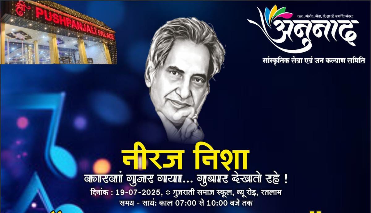 रतलाम शहर में पहली बार अनुनाद गुनगुनाएगा नीरज के फिल्मी गीत, नीरज निशा का आयोजन 19 जुलाई को!