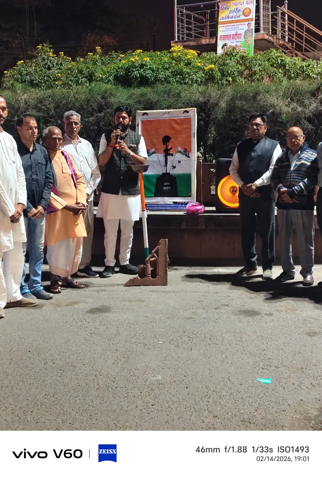 *सभा के दौरान “भारत माता की जय” एवं “वंदे मातरम्” के नारों से वातावरण राष्ट्रभक्ति से गूंज उठा। तत्पश्चात अमर जवान स्तंभ पर पुष्पांजलि अर्पित की गई तथा मशाल प्रज्वलित कर वीर शहीदों को सामूहिक श्रद्धांजलि दी गई। अंत में राष्ट्रगान के साथ कार्यक्रम का समापन किया गया।*