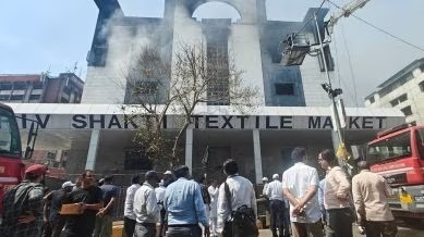 सूरत में कपड़ा बाजार में भीषण आग, 800 राजस्थानियों की दुकानें जली,1500 करोड़ रु का नुकसान, एक व्यापारी की मौत