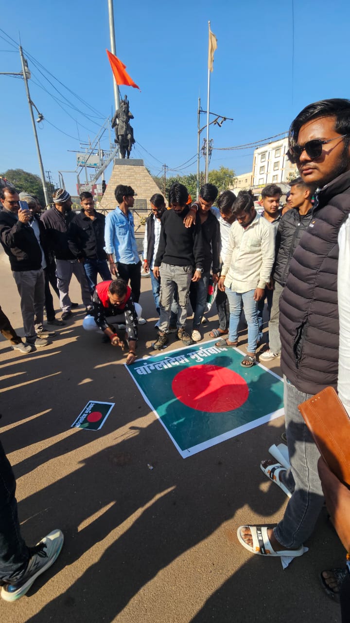 छतरपुर। बांग्लादेश में हुई नृशंस हत्या की घटना को लेकर शहर में लोगों का गुस्सा सड़कों पर दिखाई दिया। चाक-चौराहों और पब्लिक टॉयलेटों में बांग्लादेश के झंडे और पोस्टर लगाए गए, जिन्हें लोगों ने पैरों, जूते-चप्पलों और वाहनों के नीचे रौंदकर विरोध जताया।