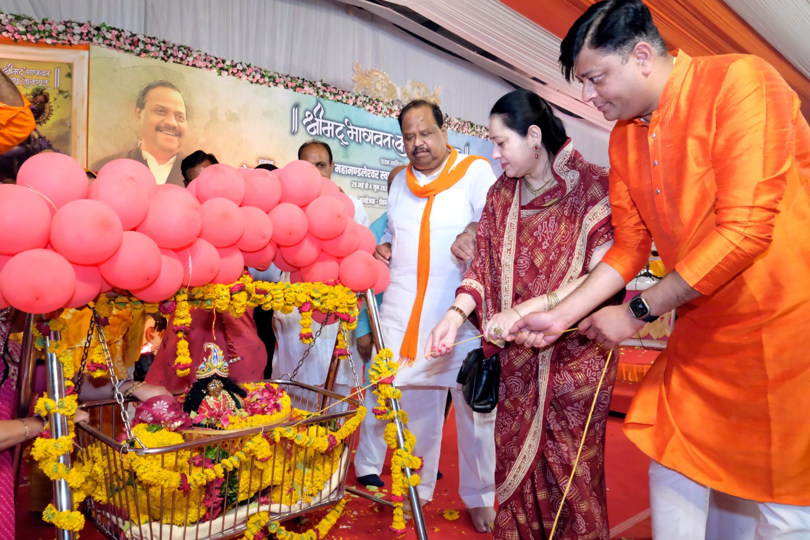 जिस प्रकार बल्ब को जलाने के लिए तार को एक बार जोड़ना पड़ता है, ऐसे ही अपने मन को भगवान से एक बार जोड़लो पाप मिट जाएंगे और पुण्य का उदय होगा।स्वामीजी ने विधायक काश्यप को विश्वास दिलाया कि आपकी इस दिशा में एक कदम उठाएंगे तो संत समाज चार कदम उठाने के लिए तैयार हैं।महामहिम राज्यपाल थावरचंद गेहलोत ने इस अवसर पर कहा कि हमारा देश ऋषिमुनियों का देश है।उनके आशीर्वचन से ही देश का धर्म,संस्कृति,सभ्यता और आध्यात्म विश्व के अनेकों देशों के लोगों को प्रभावित कर रहा है।कई देशों के लोग हमारे धर्म-संस्कृति को अपना कर अपने जीवन को सफल करने का प्रयास कर रहे है।श्री गेहलोत ने कथा में सुनाए जाने वाले प्रसंगों को अंगीकार करने का आव्हान किया और कहा कि व्यक्ति को जब बचपन से धर्म संस्कृति के संस्कार मिलते है।तो उसका, परिवार,समाज का जीवन सफल हो जाता है।कलयुग में धर्म संस्कृति की महती आवश्यकता है।इसके बिना विश्व कल्याण और शांति संभव नहीं है।महापौर प्रहलाद पटेल ने कहा कि कथा कई संदेश देती है।हमें उसके संदेशों का अनुसरण कर अपना जीवन सफल बनाना चाहिएविधायक चेतन्य काश्यप ने कहा कि राजनीति एक ऐसा कर्म हैं, जिसे समझ कर किया जाए तो समाज में समरसता का माहौल निर्मित हो सकता है।वर्तमान समय में धर्म का कर्म अति आवश्यक है,क्योंकि इससे ही प्रकृति का संतुलन बना रह सकता हैं।