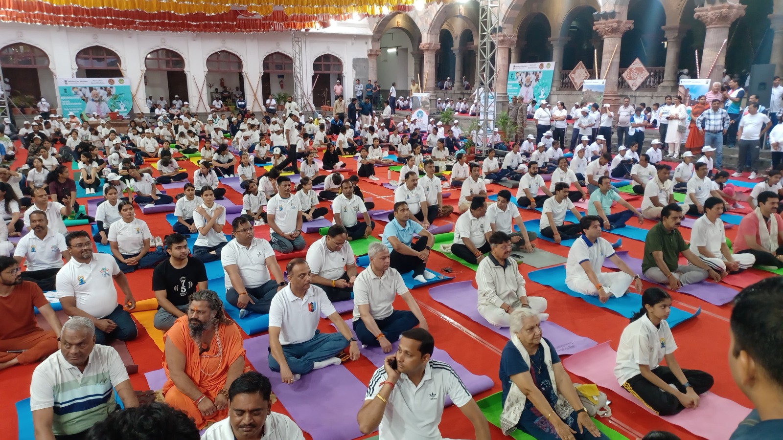 indore News: 11वें अंतर्राष्ट्रीय योग दिवस पर पहली बार ऐतिहासिक राजवाड़ा में सामूहिक योग,केन्द्रीय मंत्री सिंधिया, मंत्री विजयवर्गीय सहित स्कूल कॉलेज के छात्र-छात्राओं ने लिया भाग