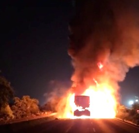 Indore-Pune Bus Catches Fire : इंदौर से पुणे जा रही बस में कंटेनर से टक्कर के बाद आग, 8 यात्री घायल!