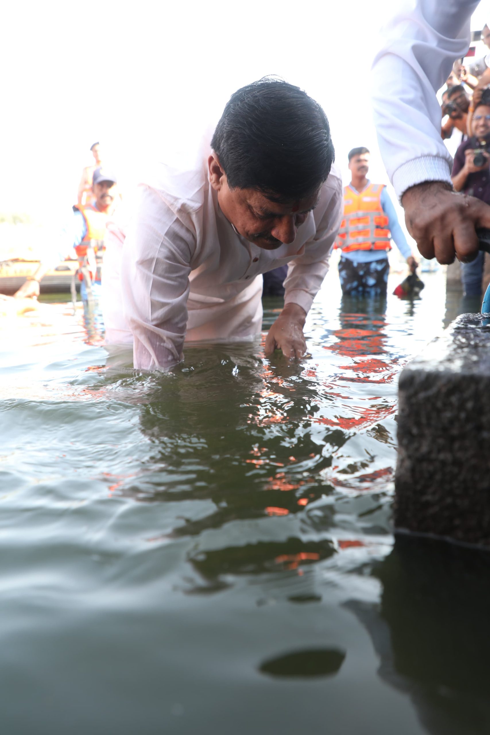 बाद में उन्होंने मां शिप्रा में स्नान कर डुबकी लगाई और मां शिप्रा का पूजन अभिषेक किया।