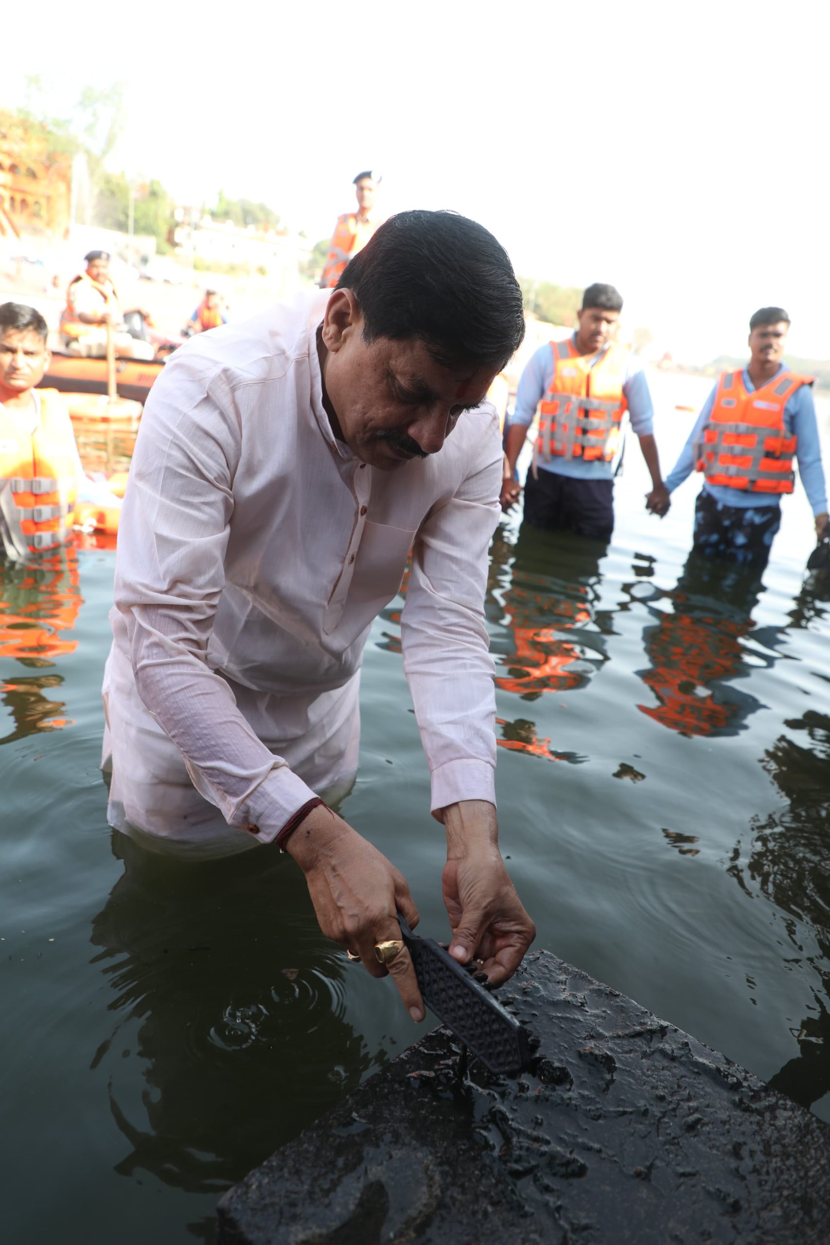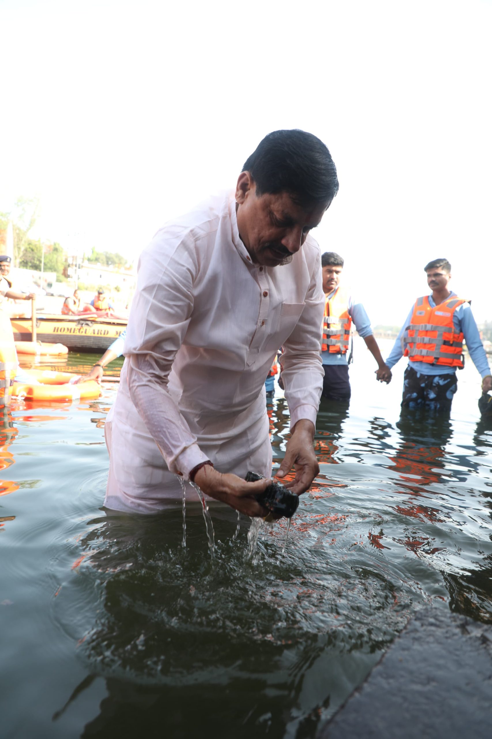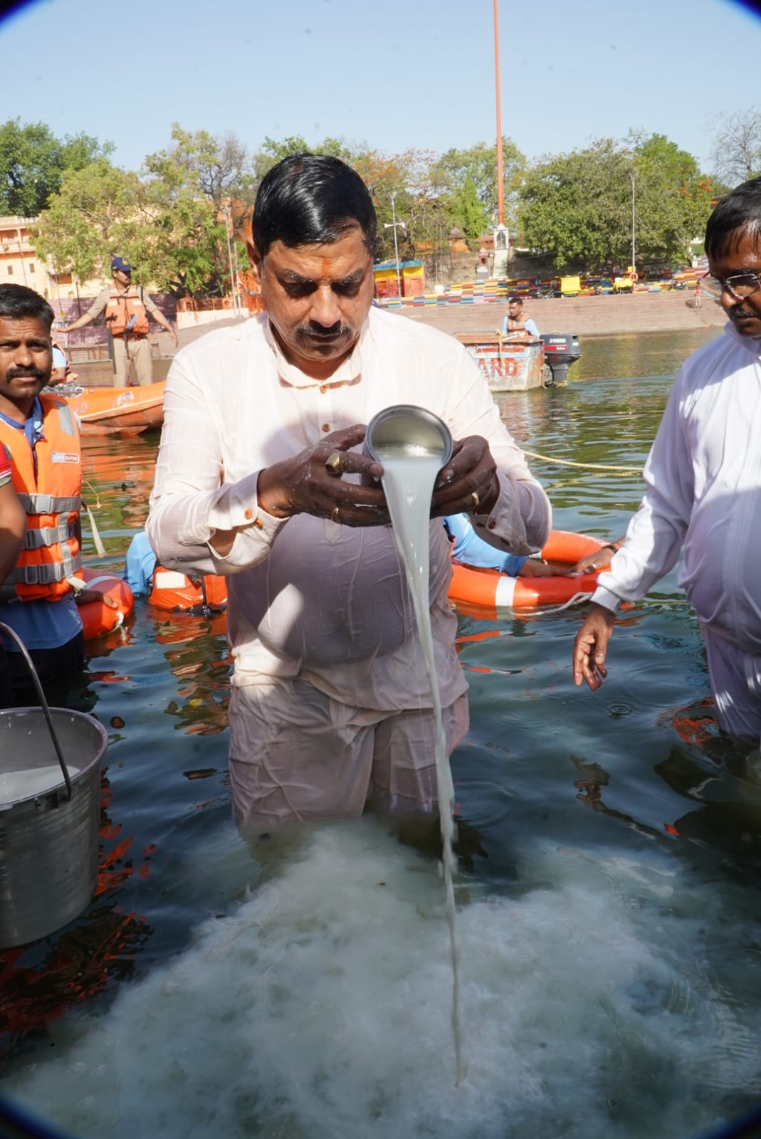 बाद में उन्होंने मां शिप्रा में स्नान कर डुबकी लगाई और मां शिप्रा का पूजन अभिषेक किया।