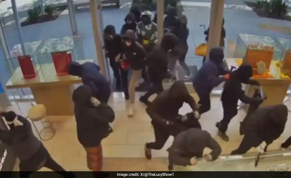 कैलिफोर्निया का ज्वैलरी स्टोर, 25 नकाबपोश लुटेरे, हथौड़े और गन से लैस, 6 कारों से पहुंचे, एक मिलियन डॉलर की ज्वैलरी की लूट।