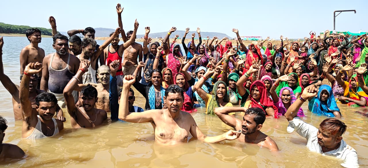 छतरपुर। केन-बेतवा लिंक परियोजना के विरोध में आदिवासी और किसान अब निर्णायक चरण में पहुंच गए हैं। मंगलवार को जिले में कई मोर्चों पर एक साथ प्रदर्शन हुए, जिनमें ‘जल सत्याग्रह’, ‘मिट्टी सत्याग्रह’ और ‘चिता आंदोलन’ शामिल रहे। बड़ी संख्या में ग्रामीण केन नदी में उतरकर घंटों पानी में खड़े रहे और अपने विस्थापन के खिलाफ विरोध जताया।