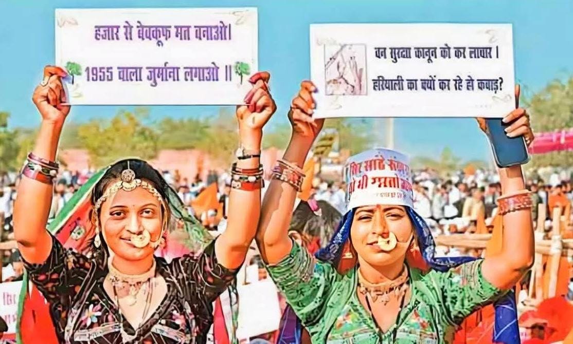 ● महापड़ाव और सरकार पर बढ़ता दबाव बीकानेर के पॉलीटेक्निक कॉलेज मैदान में बीते दिनों सुबह 11 बजे से रात 8 बजे तक महापड़ाव आयोजित किया गया। इसमें बीकानेर, श्रीगंगानगर, हनुमानगढ़, जोधपुर, बाड़मेर और फलोदी सहित प्रदेशभर से पर्यावरण प्रेमी, संत समाज, सामाजिक संगठन और जनप्रतिनिधि पहुंचे। वक्ताओं ने सोलर प्लांट के नाम पर खेजड़ी कटाई को विकास के नाम पर विनाश बताया और जनभावनाओं की अनदेखी का आरोप लगाया। सरकार पर दबाव बढ़ने के बाद मुख्यमंत्री की ओर से ट्री प्रोटेक्शन एक्ट बनाने का आश्वासन जरूर दिया गया है, लेकिन आंदोलनकारियों का कहना है कि जब तक लिखित आश्वासन और कानून लागू नहीं होता, आंदोलन जारी रहेगा। दूसरी ओर आरोप है कि सोलर कंपनियों के दबाव में रात के अंधेरे में खेजड़ी कटाई की घटनाएं अब भी नहीं रुकी हैं और पुलिस व प्रशासन प्रभावी कार्रवाई नहीं कर रहा।