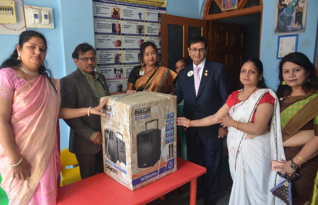 अभिमा की चार्टर प्रेसीडेंट लायन सीमा भारद्वाज ने बताया कि क्लब की अध्यक्ष कांता छंगाणी ने पोर्टेबल साउंड सिस्टम भेंट किया, सारथी संस्था की संचालिका स्वाति सोलंकी ने संस्था की जानकारी देते हुए कहा कि मानसिक दिव्यांग, ऑटिज्म वाले बच्चों की शिक्षा और थैरेपी में उपयोग किया जाता हैं। इस ध्वनियंत्र से संगीत के माध्यम से बच्चो को डांस थैरेपी, सिंगिग और कम्युनिकेशन स्किल डेवलपमेंट ट्रैनिंग, स्पीच थैरेपी और सेल्फ एडवोकेसी डेवलपमेंट की ट्रेनिंग दी जाती हैं। सभी शिक्षकों के माध्यम से बच्चों में सोशल डेवलपमेंट और संज्ञानात्मक विकास होता हैं।