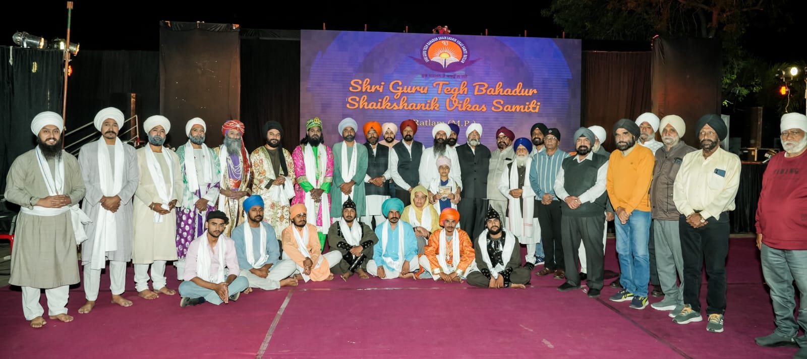 Ratlam : शहर की बरबड़ रोड़ स्थित श्री गुरु तेग बहादुर एकेडमी परिसर में गुरु तेग बहादुर जी के 350 में शहादत वर्ष पर शहादत का सजीव मंचन पटियाला के तालगुरु प्रोडक्शन चंडीगढ़ द्वारा किया गया। कार्यक्रम की शुरुआत गुरु तेग बहादुर महाराज के चरणों में अरदास कर की गई, श्री गुरु तेग बहादुर शैक्षणिक विकास समिति अध्यक्ष सरदार गुरनाम सिंह डंग, उपाध्यक्ष हरजीत चावला, सचिव अजीत छाबड़ा, कोषाध्यक्ष देवेंद्र सिंह वाधवा, सह-सचिव हरजीत सलूजा, कोषाध्यक्ष सुरेंद्र सिंह भामरा, श्री गुरु सिंघ सभा न्यू रोड अध्यक्ष अवतार सिंह सलूजा श्री गुरुद्वारा रामदास इंदिरा नगर, अध्यक्ष कश्मीर सिंह सोढ़ी, सिख समाज के साथ अन्य समाज के प्रतिनिधि भी कार्यक्रम में बड़ी संख्या में उपस्थित रहें।