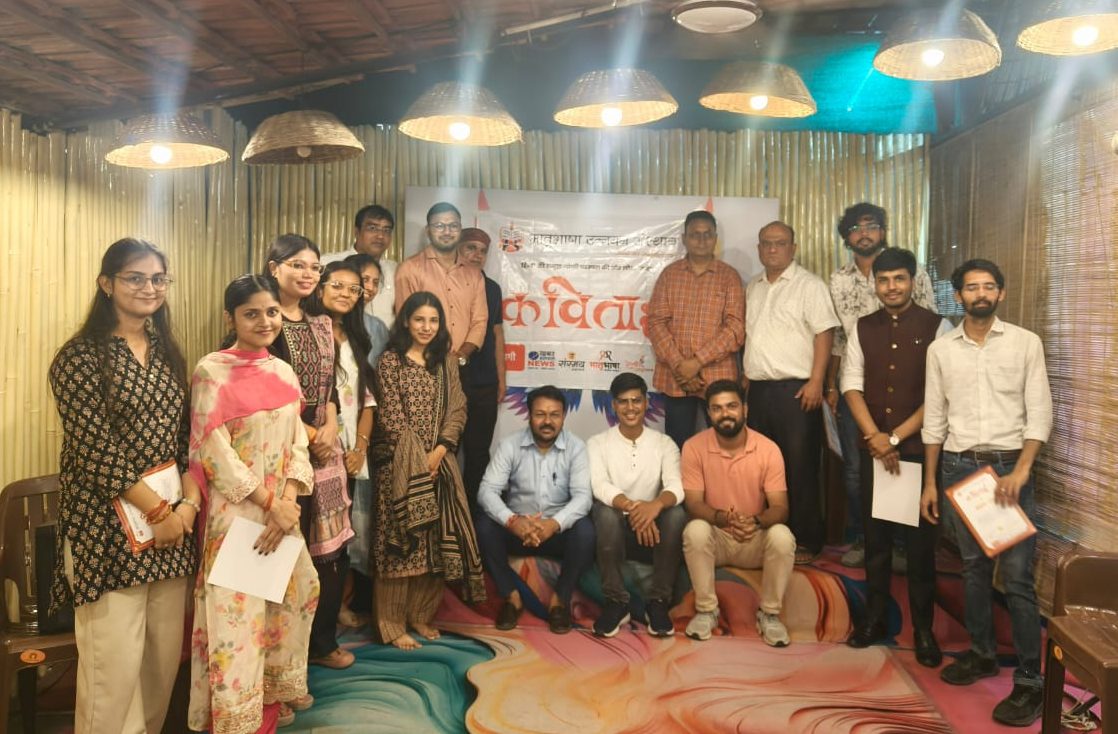 इंदौर: हिन्दी माह के दौरान हिन्दी महोत्सव 2025 के अंतर्गत मातृभाषा उन्नयन संस्थान द्वारा काव्य गोष्ठी ‘कविताई’ आरम्भ की गई। रविवार को महफ़िल रेस्टोरेंट में कविता पाठ कर परम्परा का शुभारंभ किया गया, जिसमें कवियों ने काव्य पाठ किया।