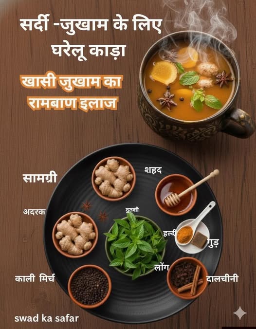 सर्दियों में खांसी, जुकाम और इम्यूनिटी बढ़ाने के लिए ‘काढ़ा’ सबसे असरदार घरेलू उपाय है। यहाँ एक बहुत ही प्रभावशाली काढ़े की रेसिपी दी गई है: