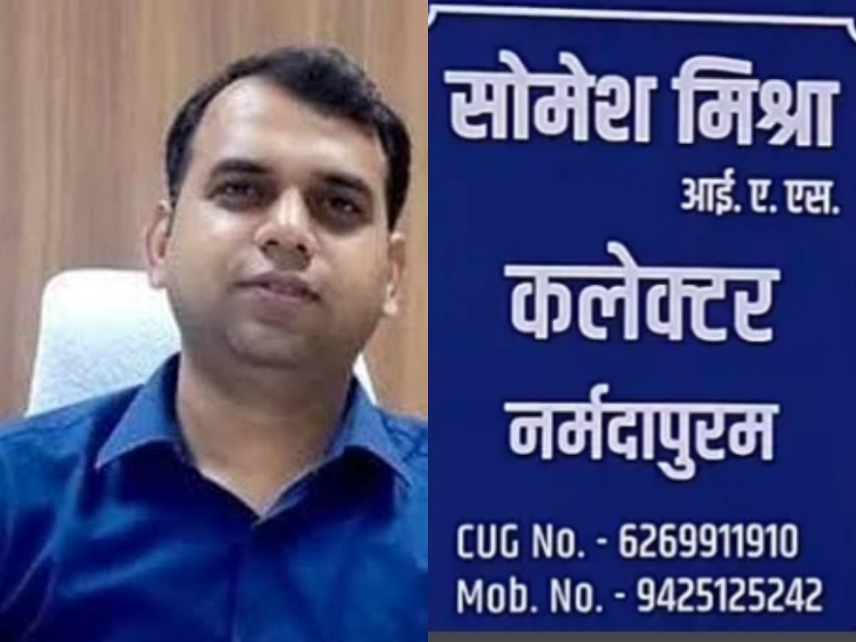 नर्मदापुरम कलेक्टर सोमेश मिश्रा ने अपनी नेमप्लेट पर लिखवाया निजी मोबाइल नंबर