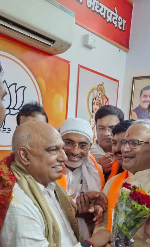 आज सुबह से ही प्रदेश भाजपा कार्यालय में प्रदेश भर के भाजपा नेताओं का मेला लगा रहा। नर्मदापुरम संभाग के साथ ही नर्मदापुरम और बैतूल जिले के भाजपा नेता बड़ी संख्या में कल से ही बधाई देने भोपाल रुके हुए थे,जिनको आज अवसर मिल पाया। श्री खंडेलवाल सभी से विनम्रता पूर्वक और आत्मीयता के साथ मिले। नर्मदापुरम सांसद दर्शन सिंह के साथ आज नर्मदापुरम जिले के वरिष्ठ भाजपा नेता संदेश पुरोहित ने नवनिर्वाचित प्रदेश भाजपा अध्यक्ष हेमंत खंडेलवाल के चैंबर में पहुंचकर उनको पुष्प गुच्छ भेंट कर आत्मीय बधाई दी। इस अवसर पर इटारसी के पूर्व मंडल अध्यक्ष द्वय जोगिंदर सिंह,नीरज जैन, पूर्व जिला उपाध्यक्ष शैलेन्द्र दीक्षित आदि भी उपस्थित थे।