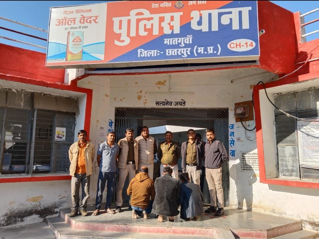 अवैध मादक पदार्थ बेचने हेतु तस्करी कर रहे 3 आरोपी रोहित तिवारी पिता कमलाकांत तिवारी निवासी बिलगांव थाना बिसंडा जिला बांदा उत्तर प्रदेश, छोटू उर्फ प्रभाकर नागायच पिता राम प्रकाश निवासी मकरबइ जिला महोबा उत्तर प्रदेश, राम जी तिवारी पिता केशव नारायण तिवारी निवासी सीताराम कॉलोनी छतरपुर के विरुद्ध थाना मातगुंवा में एनडीपीएस एक्ट के तहत अपराध पंजीबद्ध किया गया।