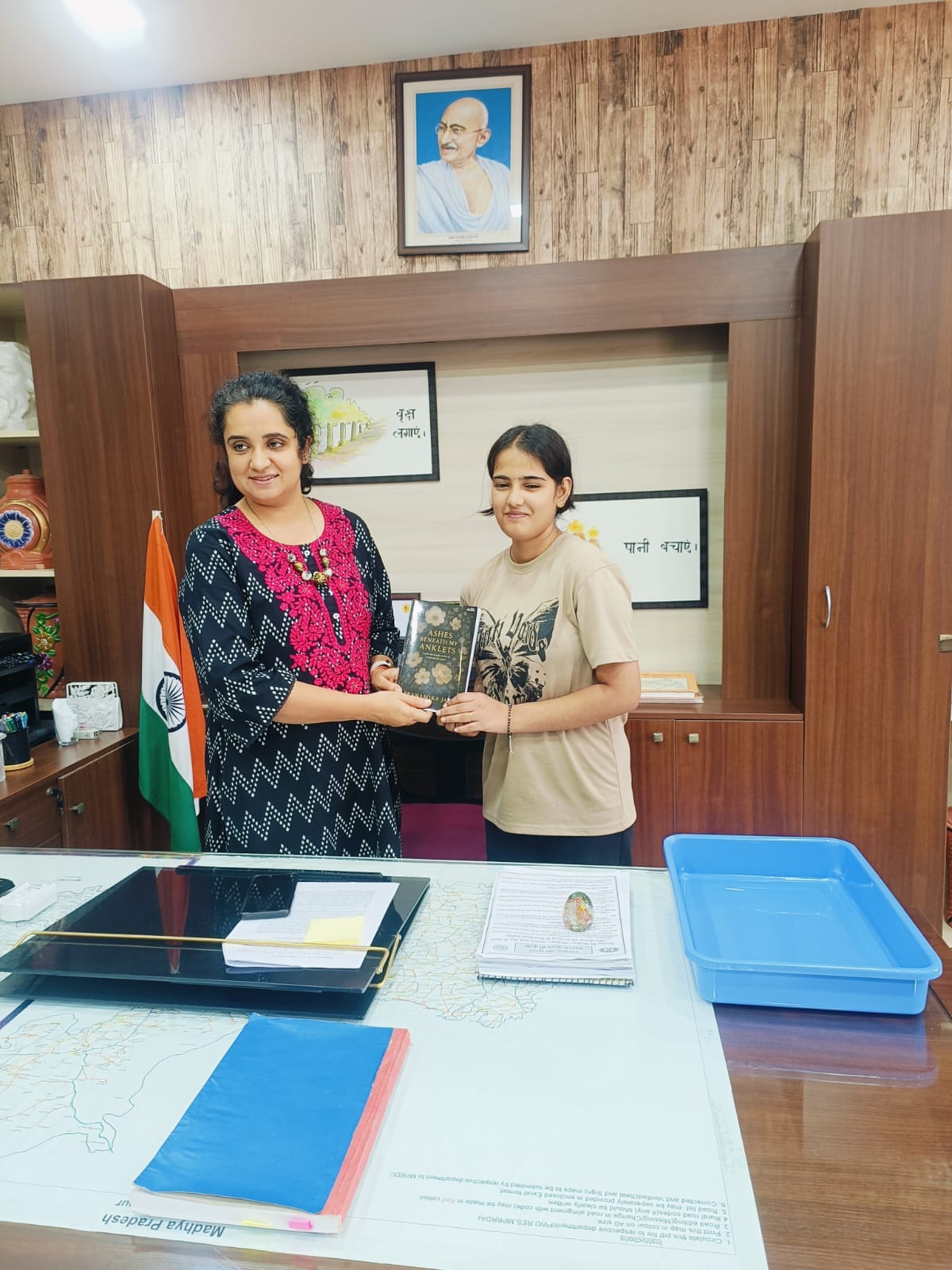कलेक्टर श्रीमती अदिती गर्ग को प्रणामिका जैन ने “ऐशेज़ बिनीथ माई एंकलेट्स” पुस्तक भेट की। कलेक्टर ने बेहतरीन कविता संग्रह के लिए प्रणामिका जैन को बधाई और शुभकामनाएं प्रदान की। उन्होंने कहा कि आपका यह संघर्ष अन्य लोगों के लिए प्रेरणादाई है।