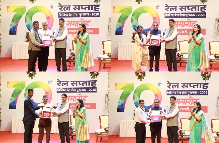 Ratlam : मुंबई के यशवंत राव चव्‍हाण प्रतिष्‍ठान में पश्चिम रेलवे चर्चगेट कार्यालय द्वारा 70वां रेल सप्ताह मनाया गया। जिसके अंतर्गत विशिष्‍ट रेल सेवा पुरस्‍कार समारोह का आयोजन किया गया। महाप्रबंधक पश्चिम रेलवे प्रदीप कुमार द्वारा पश्चिम रेलवे के विभिन्‍न मंडलों, उत्‍पादनों एवं निर्माण इकाइयों के कुल 92 अधिकारियों/कर्मचारियों का सम्मान किया गया जिसमें से रतलाम मंडल के 7 रेल कर्मियों को वर्ष 2025 में अपने-अपने क्षेत्र में उत्‍कृष्‍ट कार्य करने के लिए एफिसियंसी मेडल एवं मेरिट सर्टिफिकेट प्रदान कर सम्‍मानित किया गया।