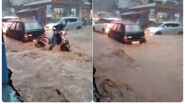 दरअसल तेज बारिश के कारण के राज्य में कई क्षेत्र पानी से भरे हुए हैं। वहां की सड़कें छोटी नदियों में तब्दील हो गए हैं और नाले भी ऊफान पर हैं। इसी बीच एक शख्स अपनी स्कूटी से कहीं जा रहा था मगर पानी के तेज बहाव के कारण उसका नियंत्रण बिगड़ गया और स्कूटी के साथ फिसलते हुए नाले में गिर गया। मगर राहत की बात यह है कि उस समय वहां मौजूद स्थानीय लोगों ने उसे बाहर निकाल लिया। उसे गंभीर चोट नहीं आई और प्राथमिक उपचार के बाद उसे घर भेज दिया गया।