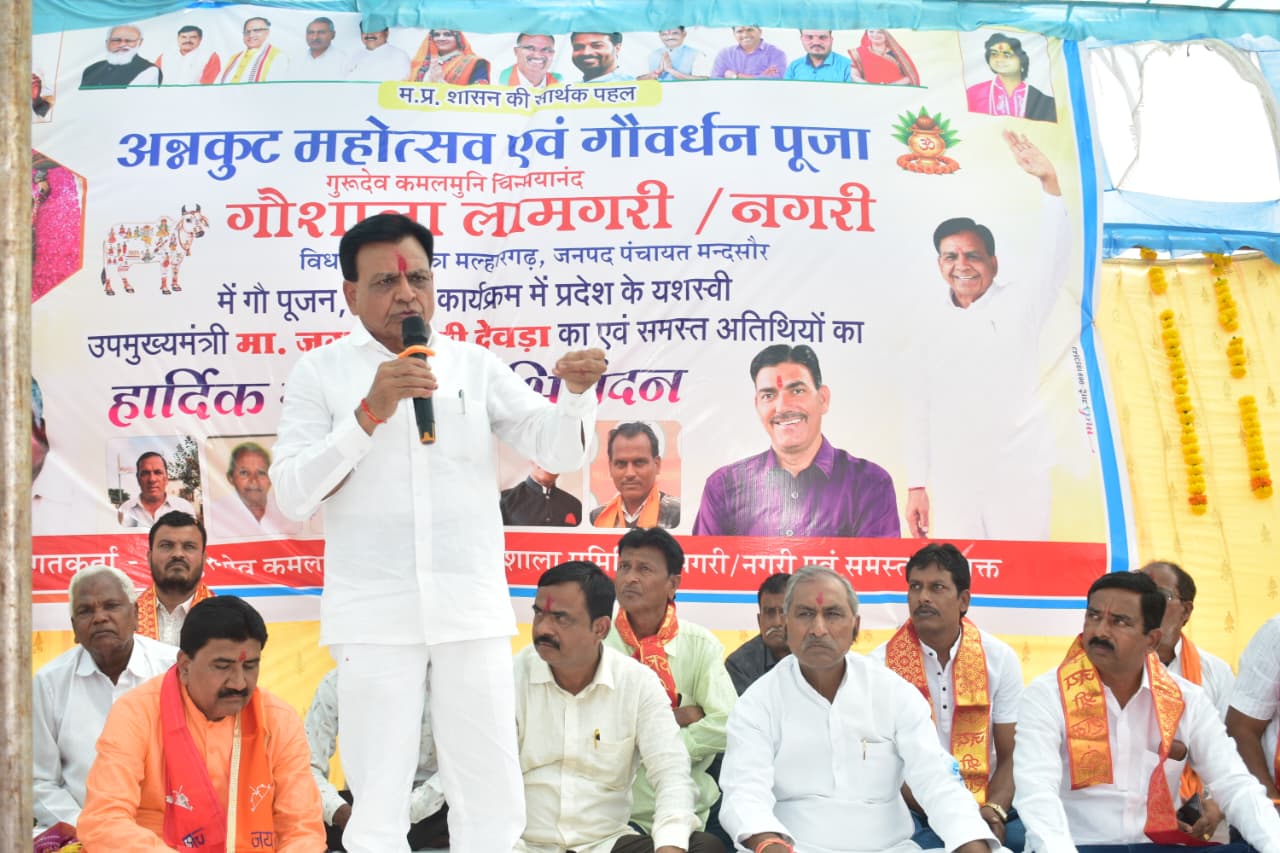 उप मुख्यमंत्री श्री देवड़ा ने लामगरी स्थित कमलमुनि चिन्मयानंद गौशाला में गोवर्धन पूजा की