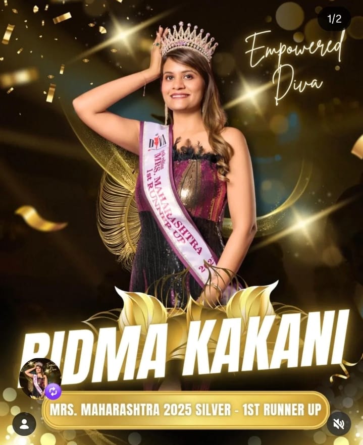 Bhopal/Ratlam : मध्य प्रदेश के रतलाम शहर की गुलमोहर कॉलोनी निवासी समाजसेवी दिनेश काकानी, श्रीमती ललिता की सुपुत्री, शहर की बेटी श्रीमती रिदमा काकानी जो वर्तमान में पुणे में VDART डिजिटल नामक आई टी कंपनी में सॉफ्टवेयर इंजीनियर के पद पर कार्यरत हैं। जिसने हाल ही में 2 उपलब्धियां अर्जित करते हुए रतलाम तथा परिवार का नाम शिर्ष पर पहुंचाया है। राजधानी भोपाल में 21 फरवरी 2026 को द पेजेण्ट कंपनी द्वारा आयोजित मिसेज सेंट्रल इंडिया में विजेता का खिताब जीता हैं और 21 दिसंबर 2025 को पुणे में द पेजेण्ट कंपनी द्वारा आयोजित मिसेज महाराष्ट्र में रनर अप का खिताब जीता हैं।